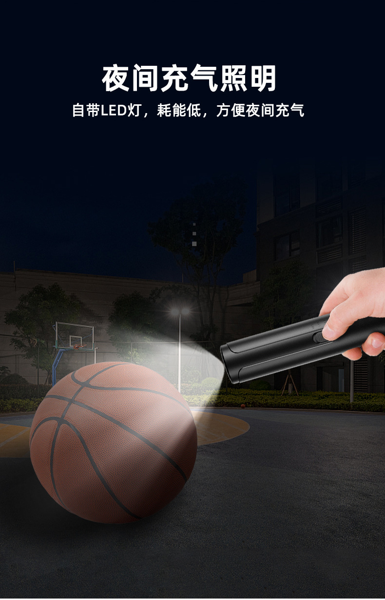 ▸自帶LED燈,耗能低,方便夜間充氣。