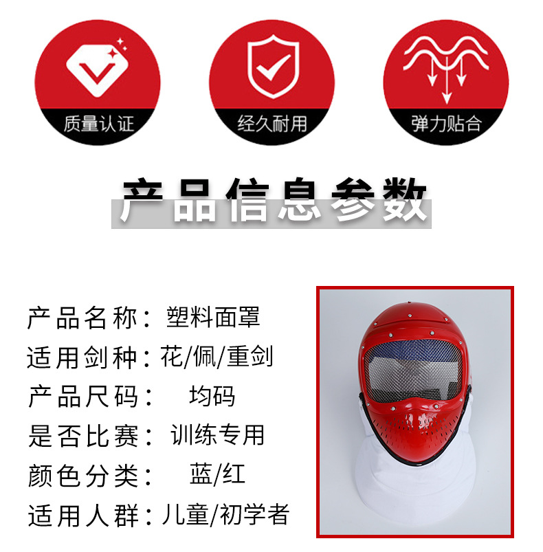 • 擊劍訓練面罩兒童塑膠頭盔輕便防刺護面訓練專用多種規格