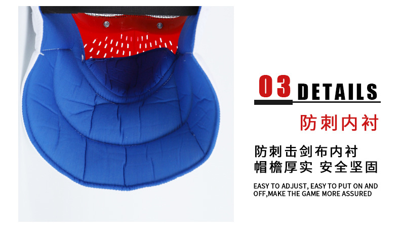 ▸防刺擊劍布內襯,帽檐厚實,安全堅固。
