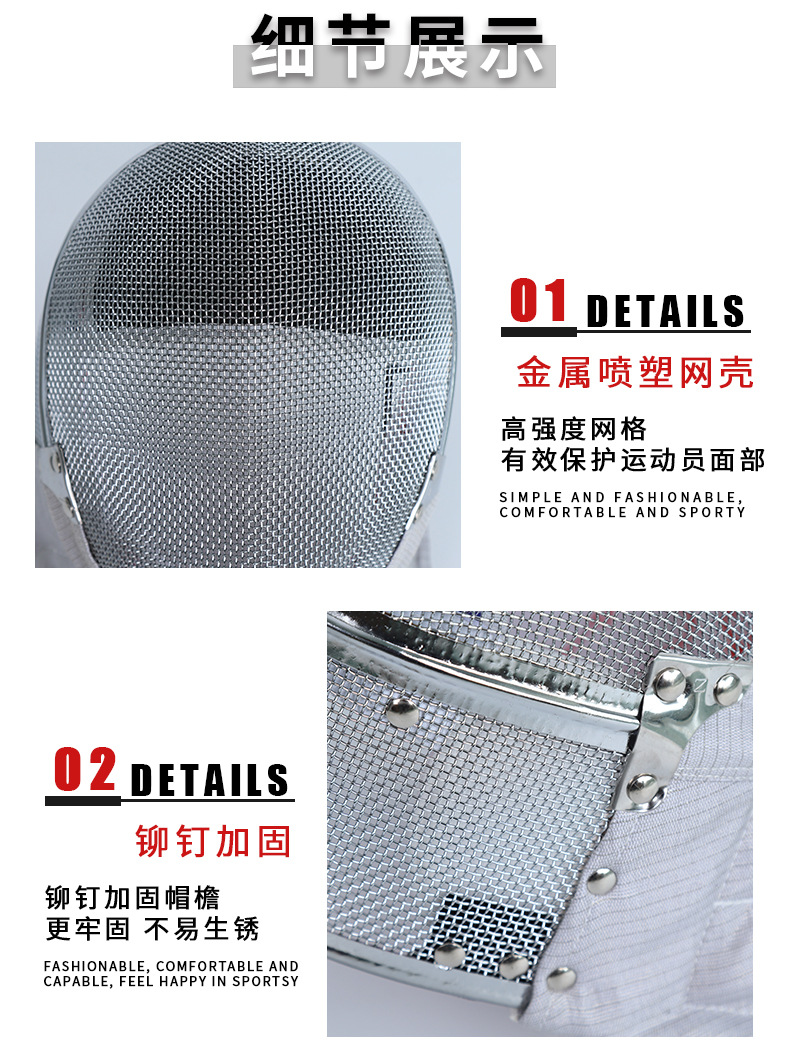 ▸金屬噴塑網殼,高强度網格,有效保護運動員面部。
