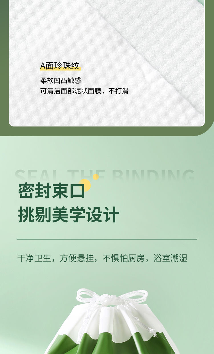 ✓採用水刺無紡布工藝,緊實有韌性,可以多次利用。