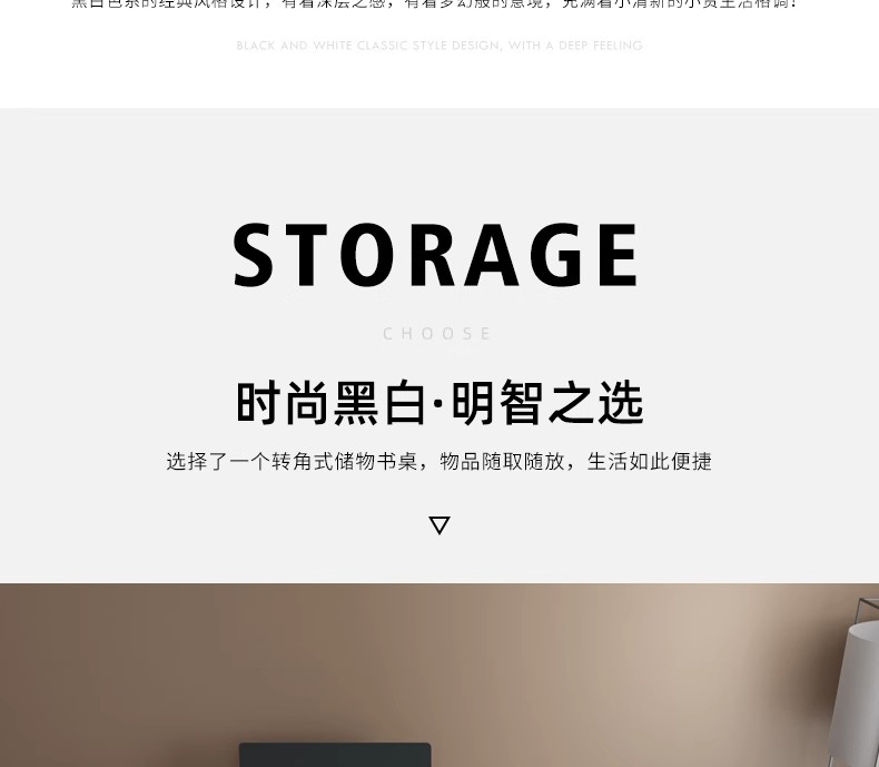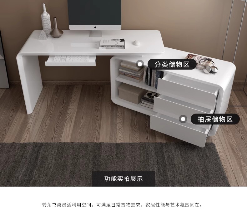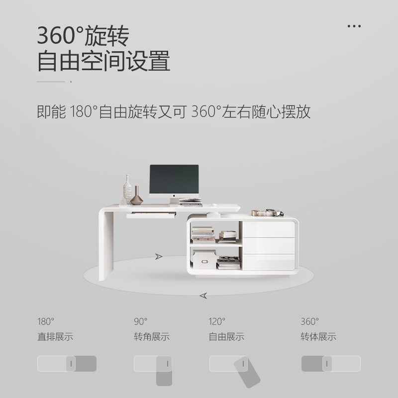 ▸360度自由旋轉,轉角書桌靈活利用空間,可滿足日常置物需求,家具性能與藝術氛圍同在。