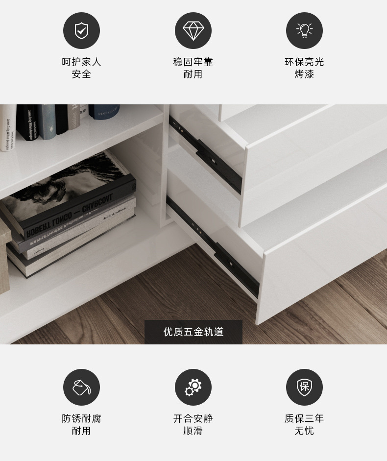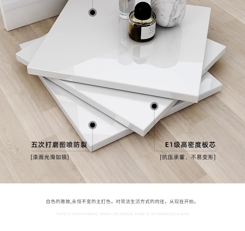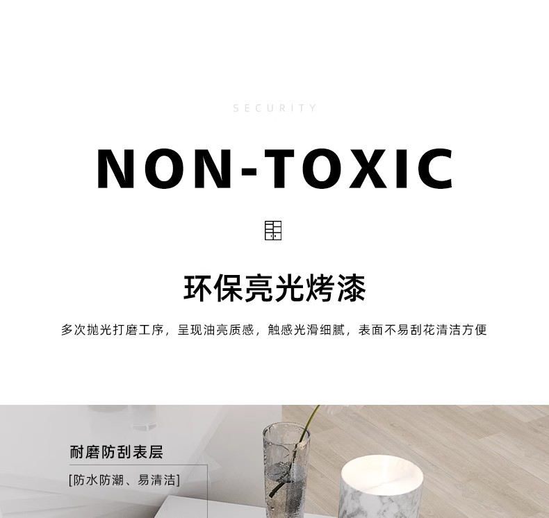 ▸環保亮光烤漆,多次拋光打磨,呈現油亮質感,觸感光滑細膩,表面耐磨防刮,防水防潮,易於清潔。
