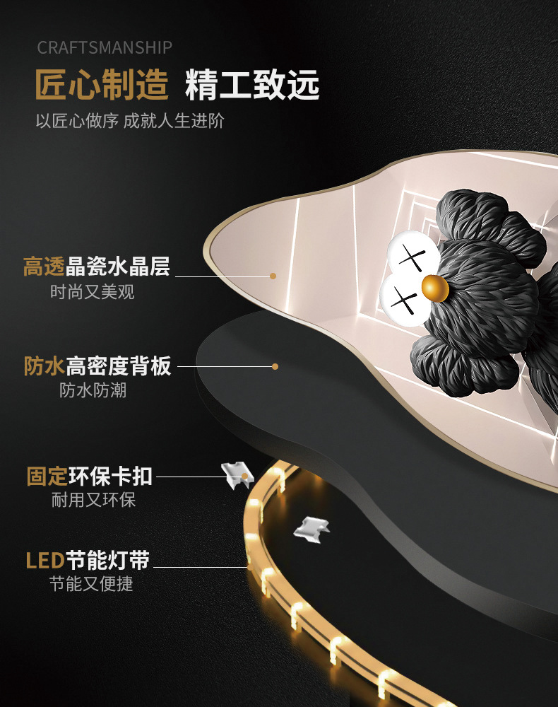 ▸高密度背板,防水防潮;高透晶瓷水晶層,時尚美觀。