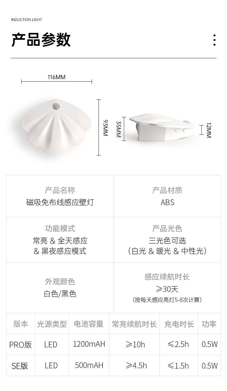 感應續航時長:≥30小時(按每天感應亮燈5-8次計算)