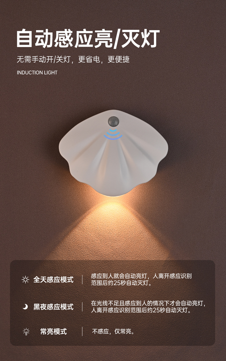 ▸自動感應亮燈滅燈,無需手動開關燈,更便捷省電。