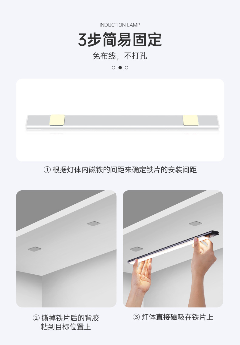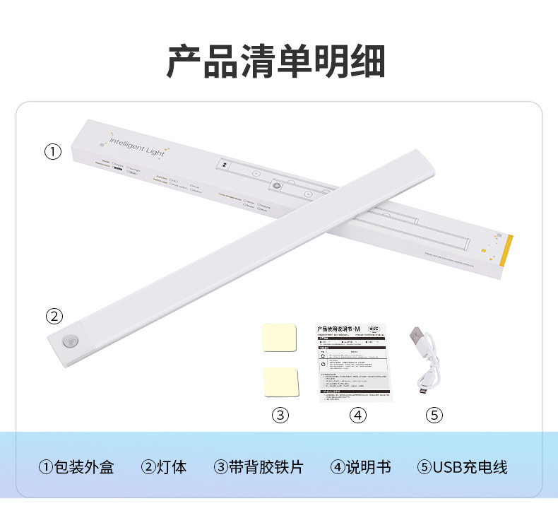 包裝清單:燈體、帶背膠鐵片、充電、說明書