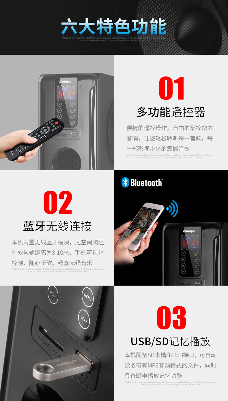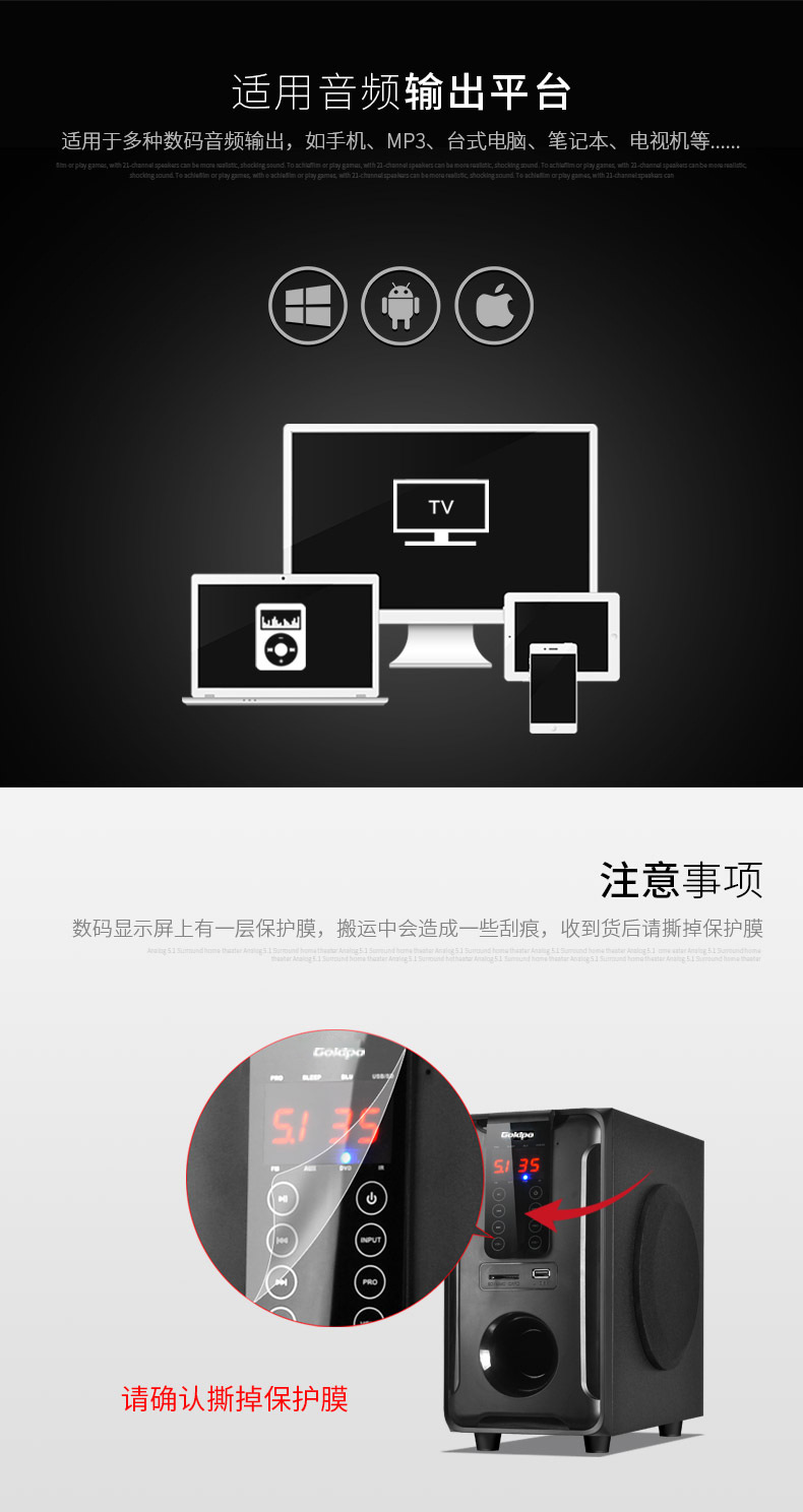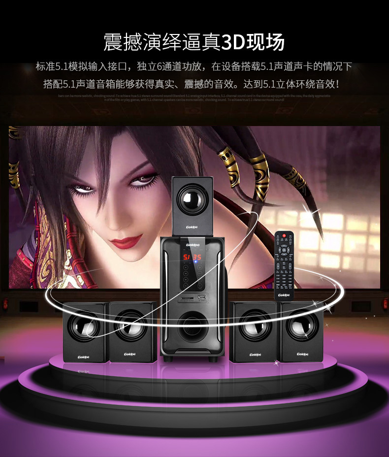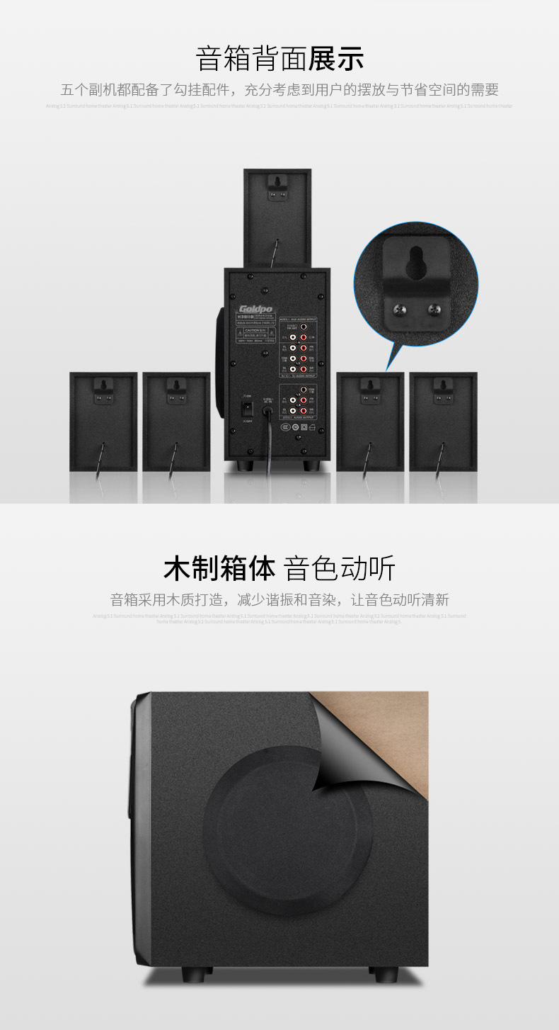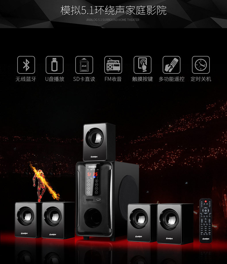產品:Goldpo H3811B 藍牙5.1家庭影院音箱英文版