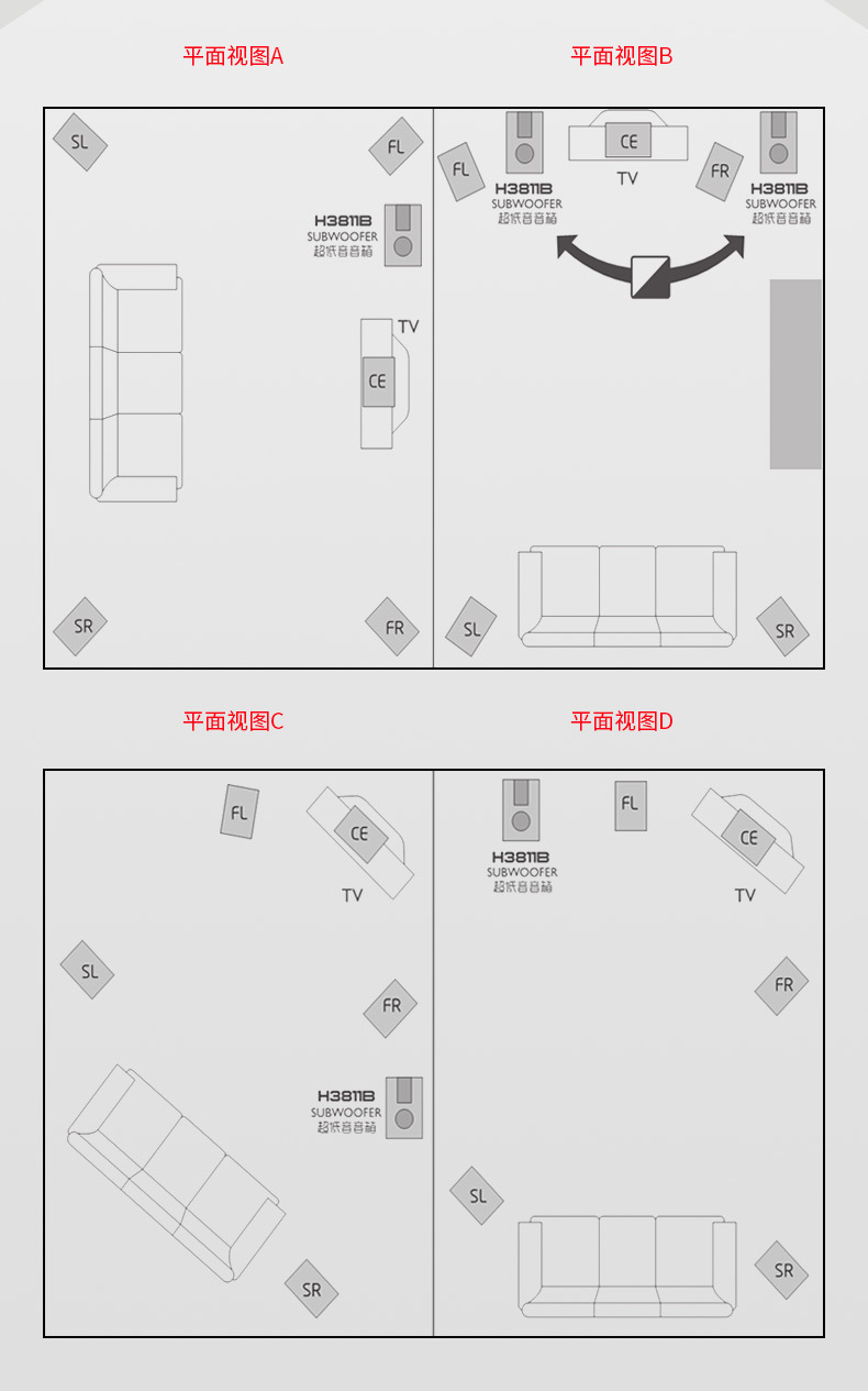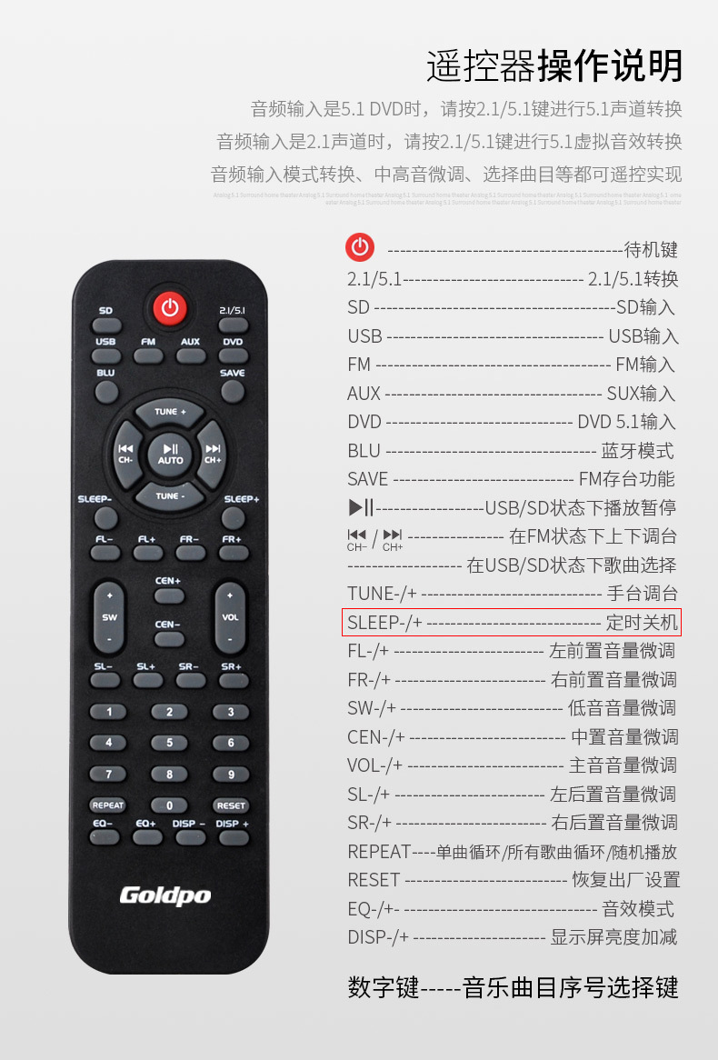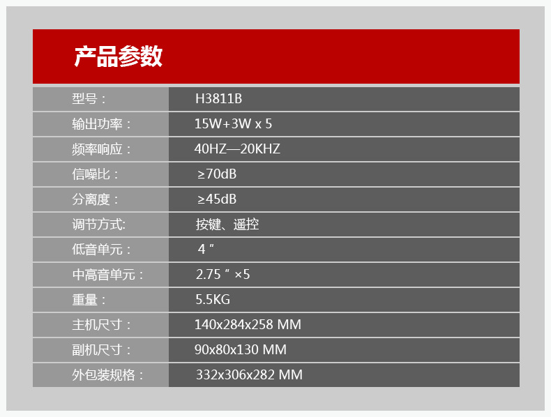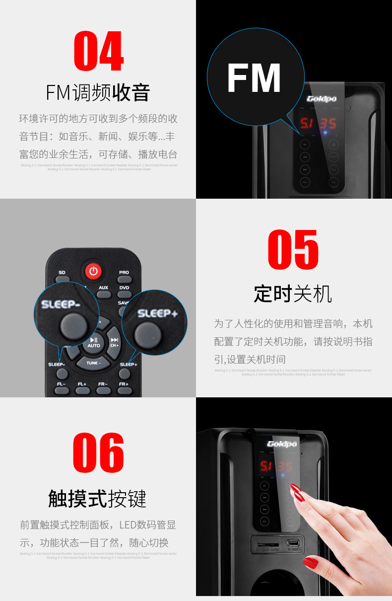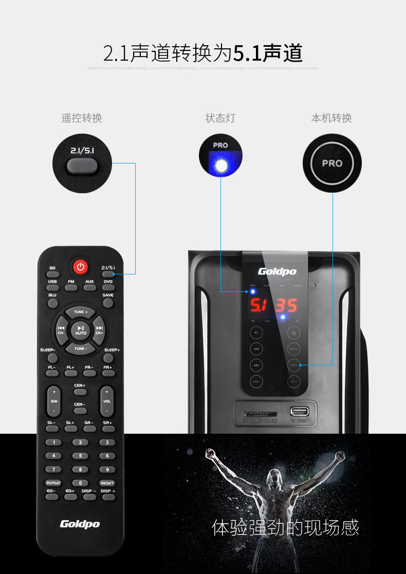產品:Goldpo H3811B 藍牙5.1家庭影院音箱英文版