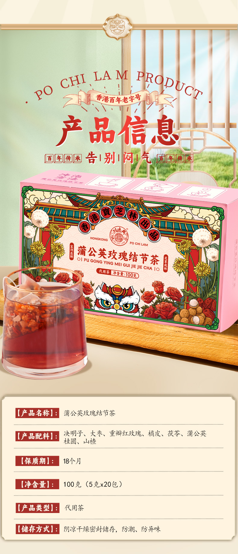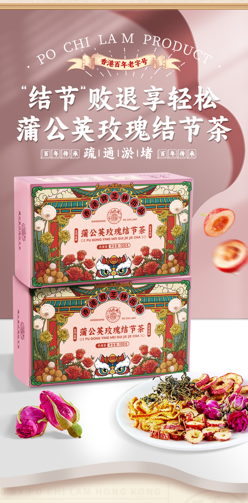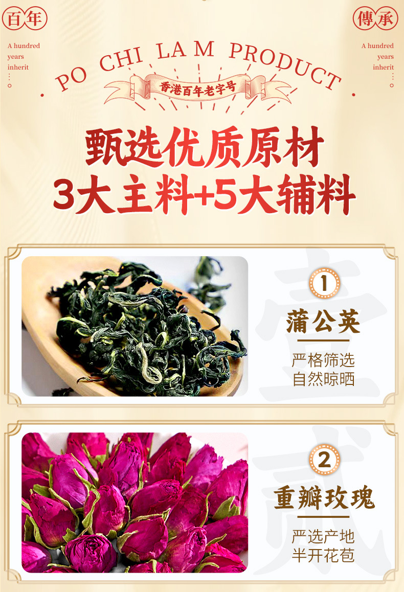 產品:香港寶芝林蒲公英玫瑰結節茶
