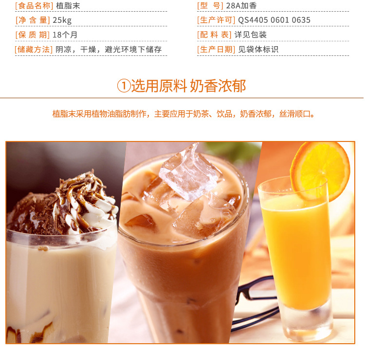 ▸採用植物油脂肪製作,奶香濃郁,絲滑順口,營養豐富。