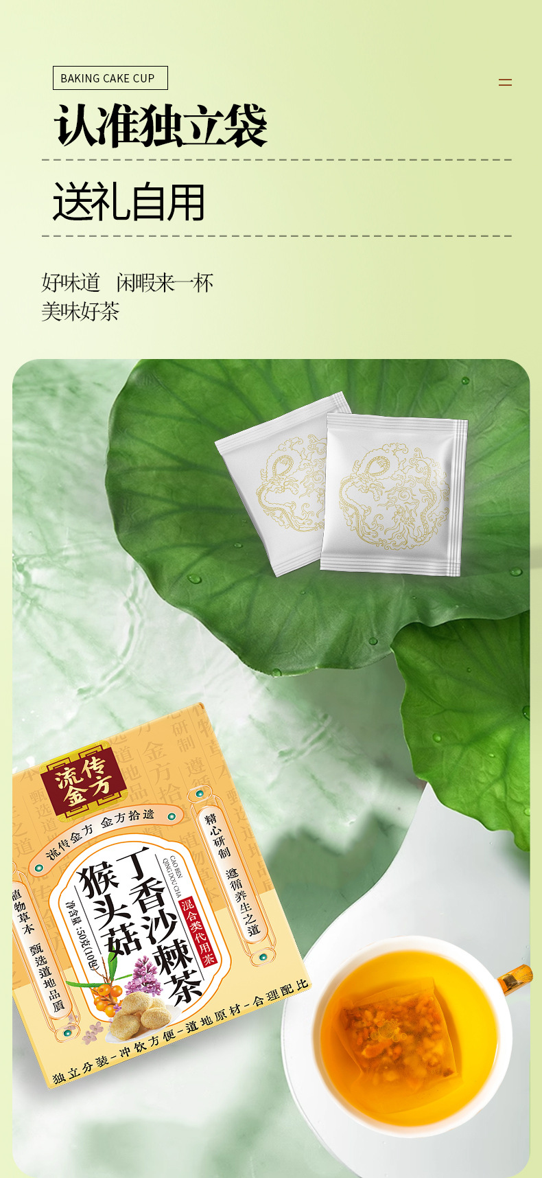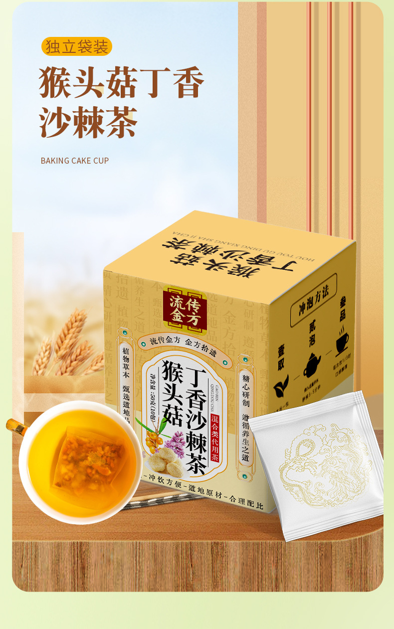 產品:流傳金方猴頭菇丁香沙棘茶