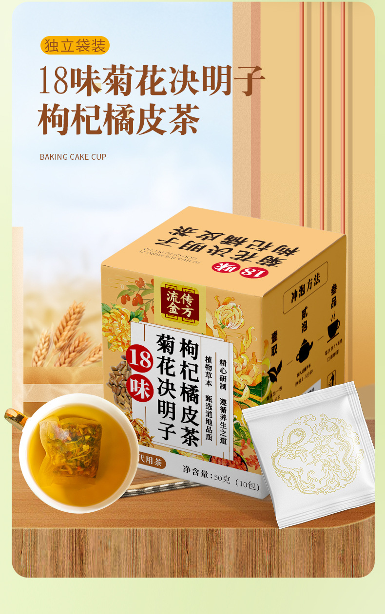 產品:流傳金方18味菊花決明子枸杞橘皮茶