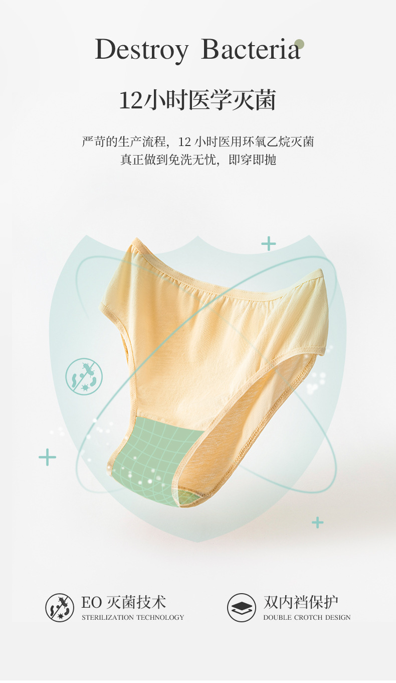 ▸嚴苛EO醫用滅菌技術,有效殺滅細菌等微生物,真正做到不用洗,開袋即穿。