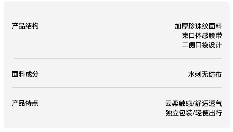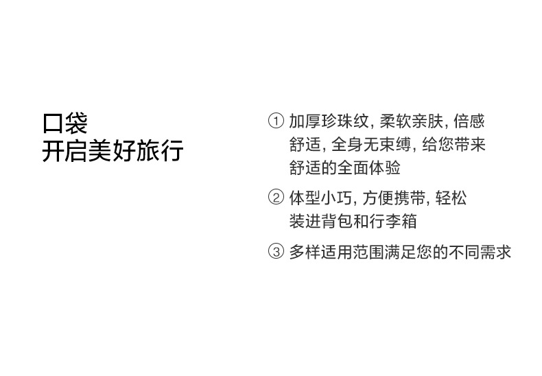 ▸獨立包裝,乾淨衛生,輕盈出行,拆開即穿。