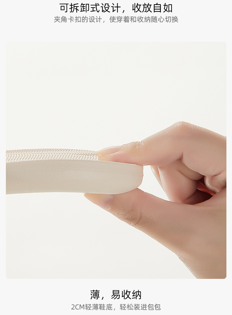 ▸2cm輕薄鞋底,輕鬆裝進包包裡。
