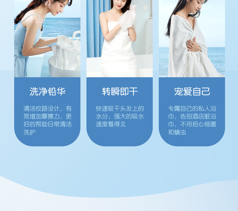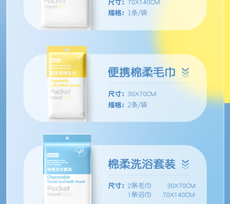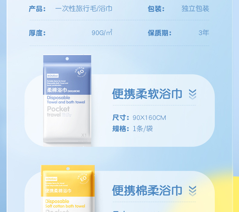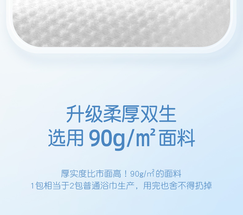 ▸選用90g/m²的面料,1包相當於2包普通浴巾。