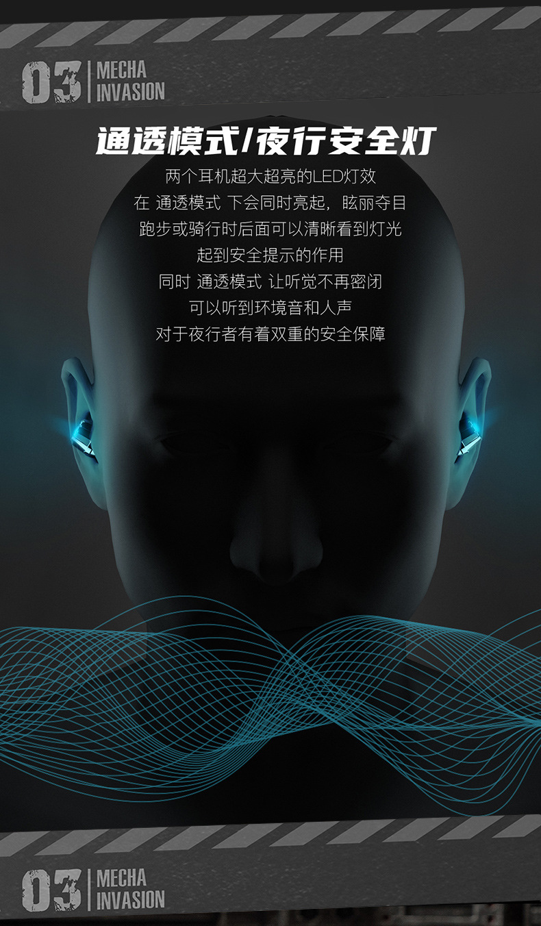 ▸兩個超大的LED燈效會在通透模式下同時亮起,跑步或騎行時可以起到安全提示作用,且通透模式下可以聽到環境音。