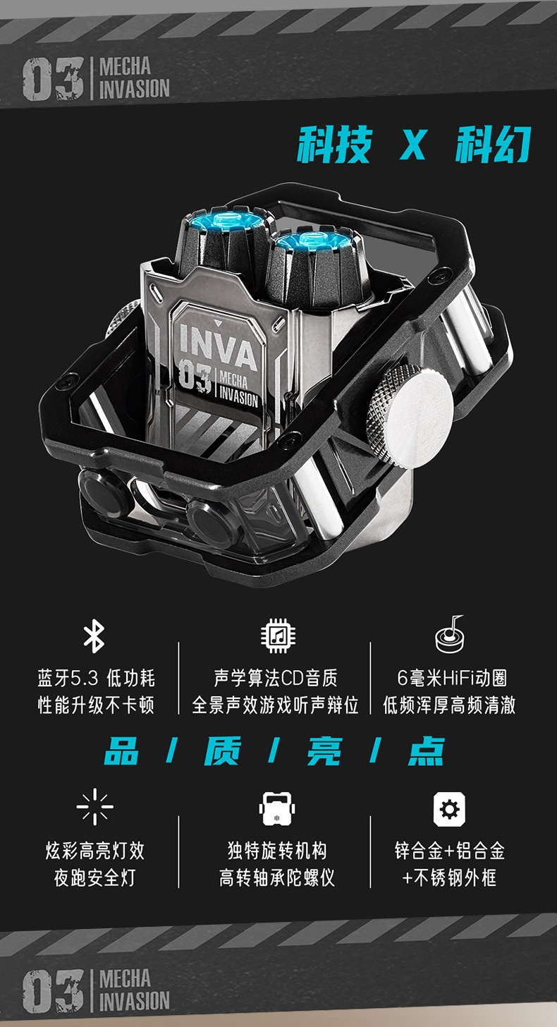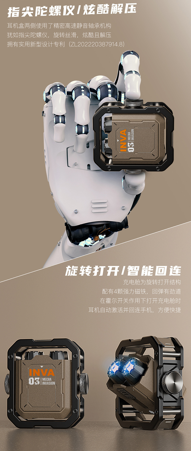 ▸耳機盒兩側使用了精密高速靜音軸承結構,猶如指尖陀螺儀,旋轉絲滑,炫酷且解壓。