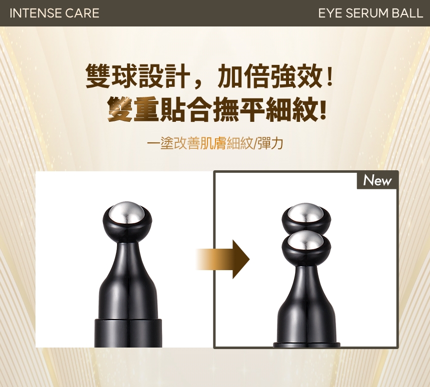 - 蘊含發酵蝸牛黏液過濾物和24K黃金成分,為眼周肌膚注入營養,集中提升彈力和保濕,同時美白肌膚;雙球滾珠型設計,加倍強效,雙重貼合撫平減淡皺紋。