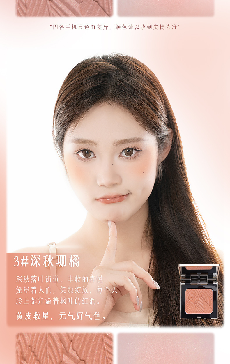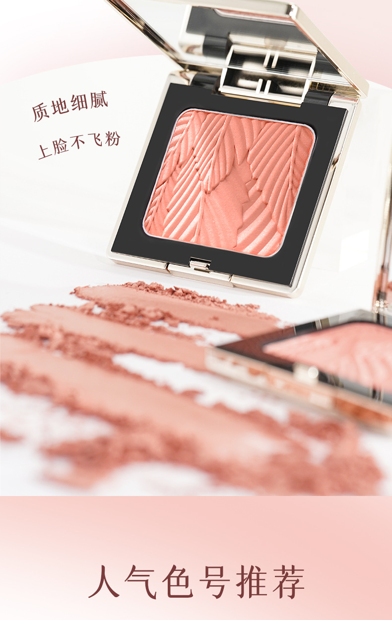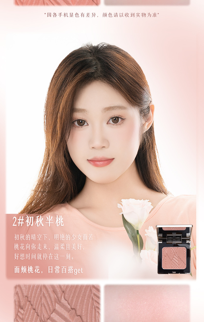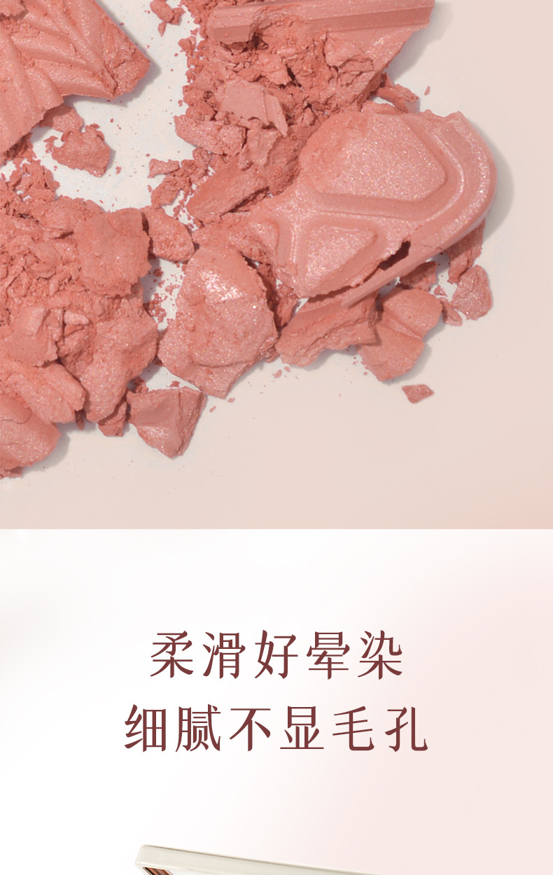 低飽和配方,適合新手使用,打造自然好膚色,喜歡高顯色的話也可以反復疊加。腮紅採用液態烘焙工藝製成,粉質細膩,不易飛粉或卡紋〜
