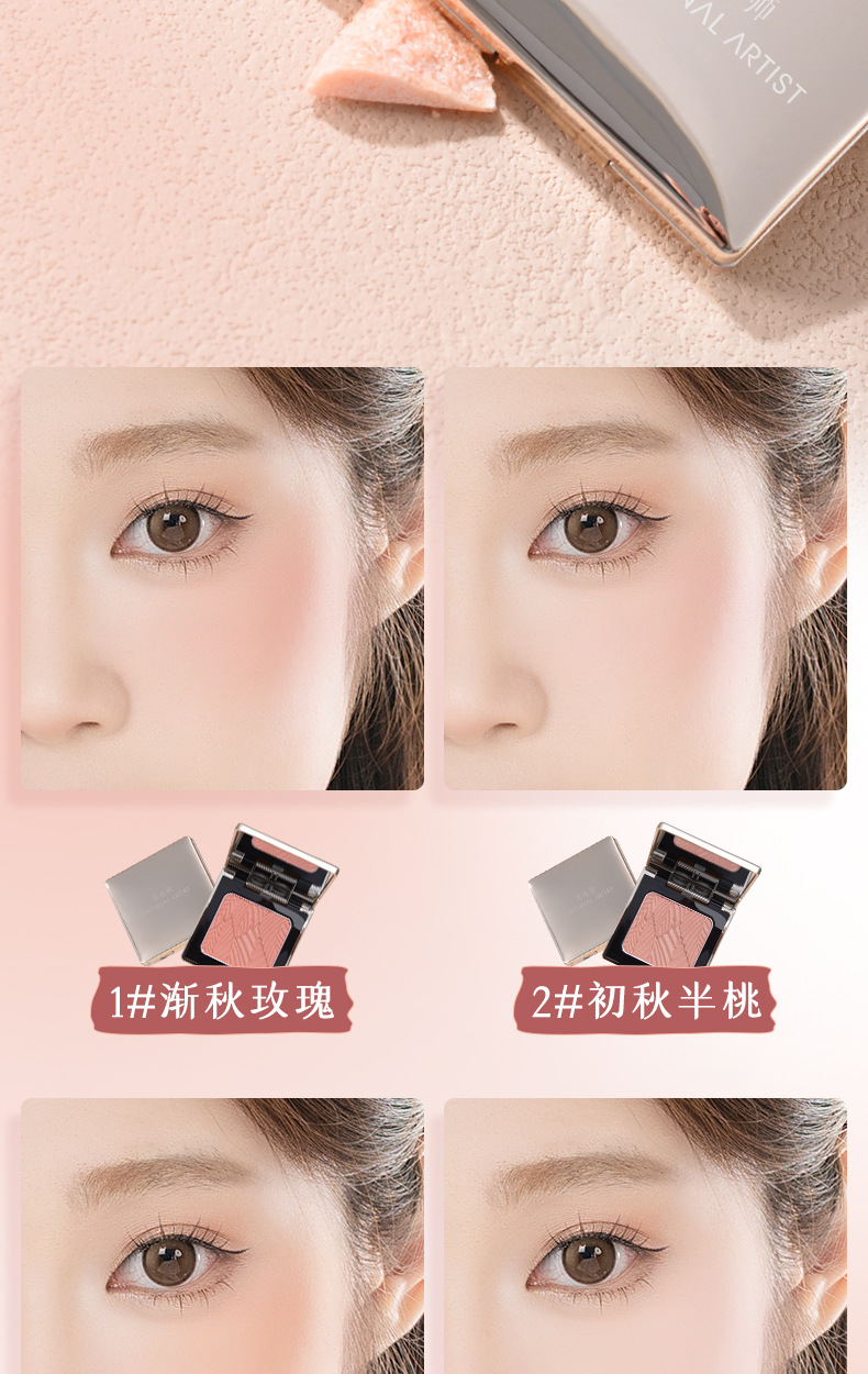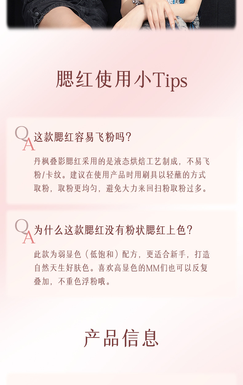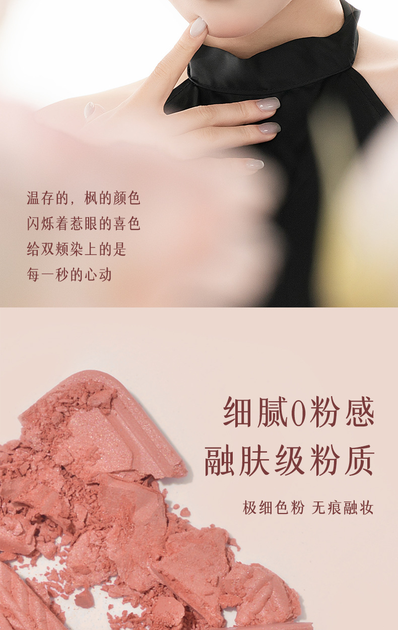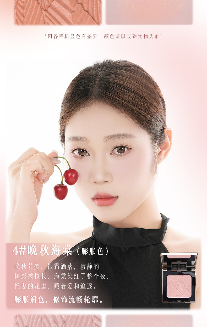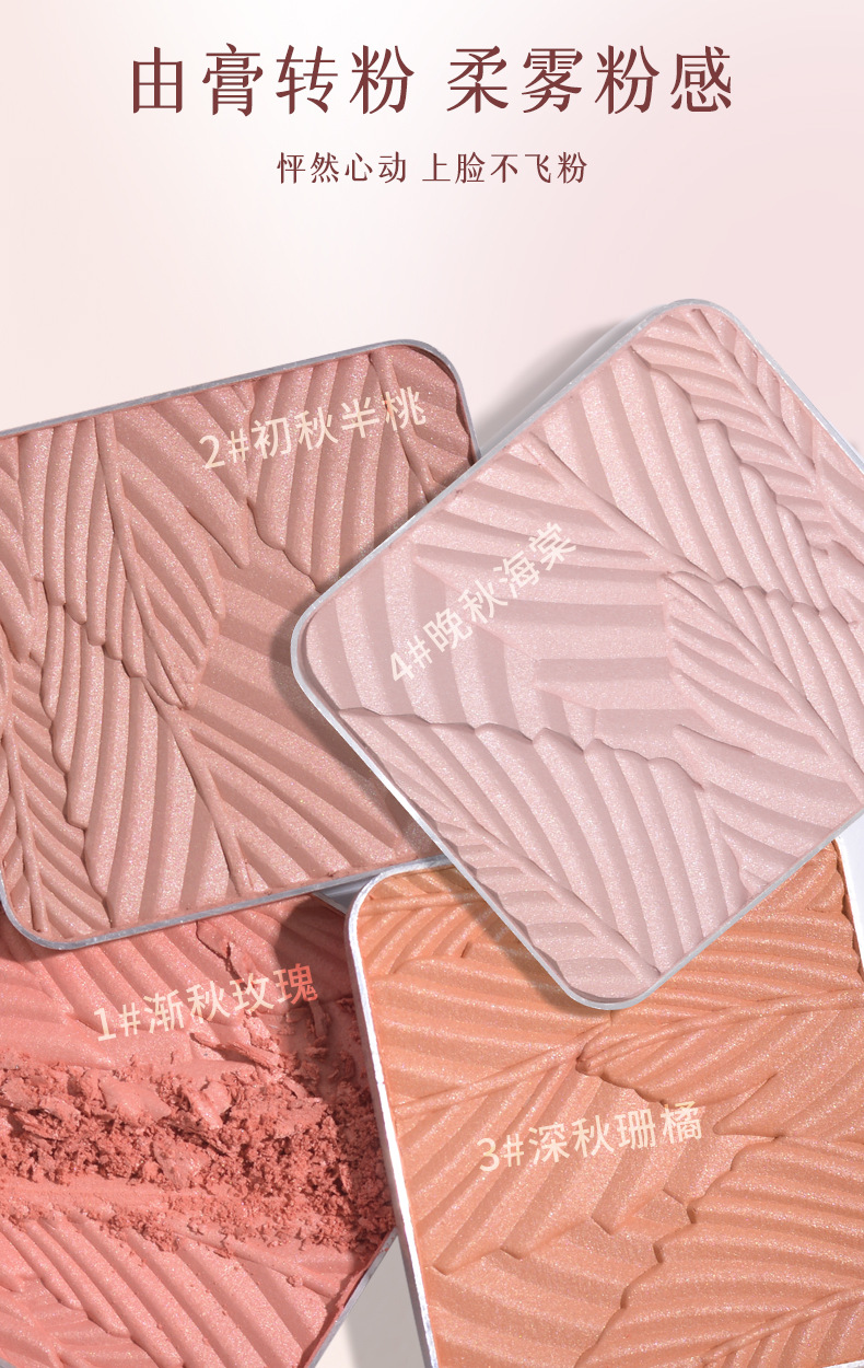 低飽和配方,適合新手使用,打造自然好膚色,喜歡高顯色的話也可以反復疊加。腮紅採用液態烘焙工藝製成,粉質細膩,不易飛粉或卡紋〜