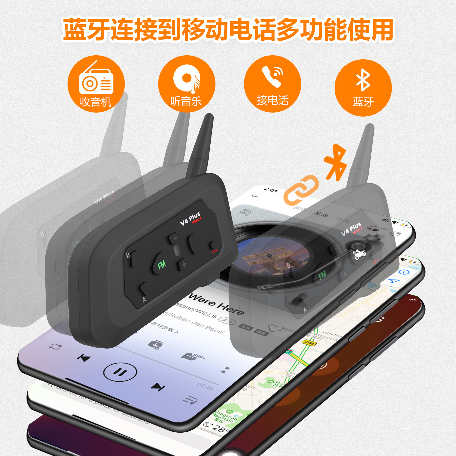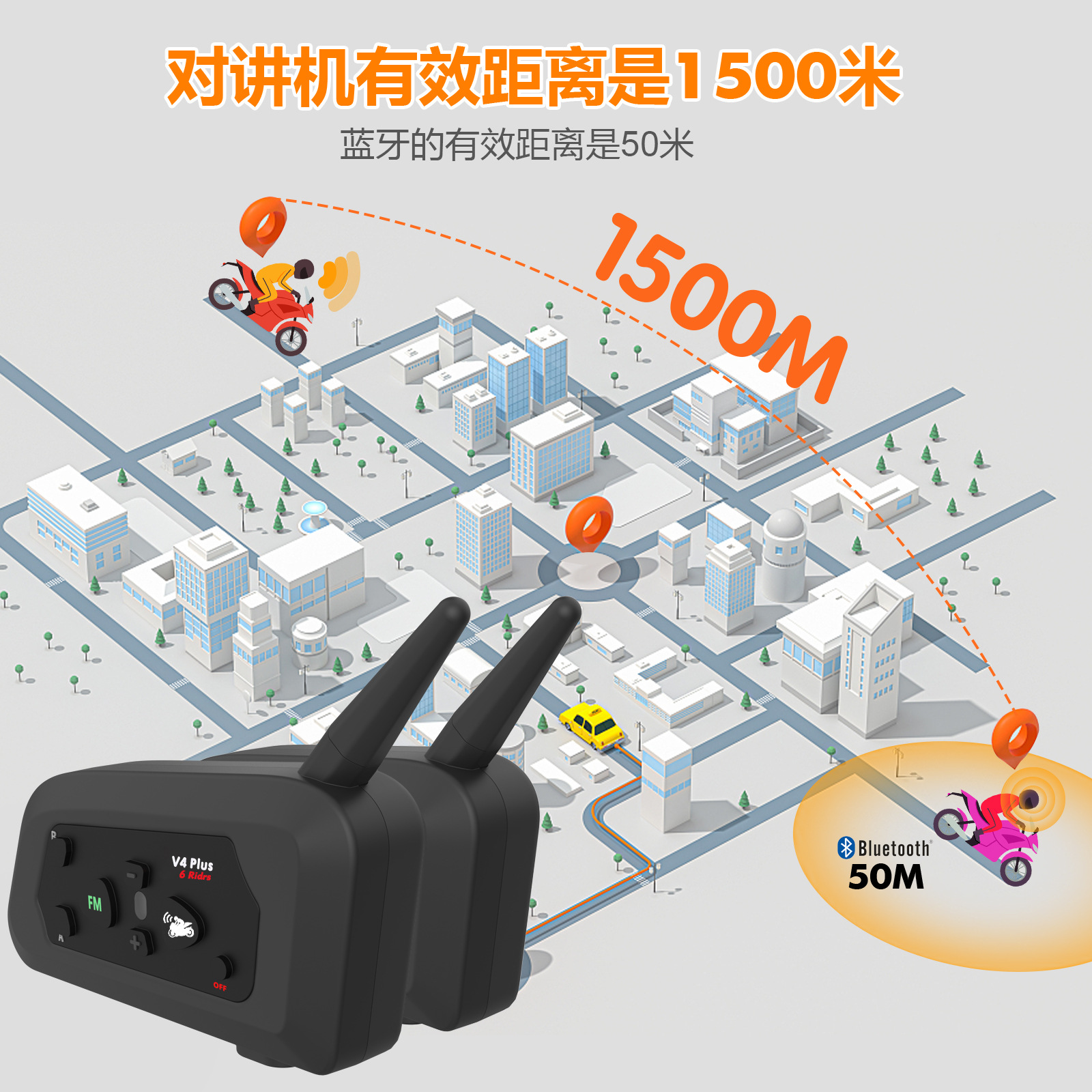 ▸藍牙有效距離50米,對講機有效距離1500米。