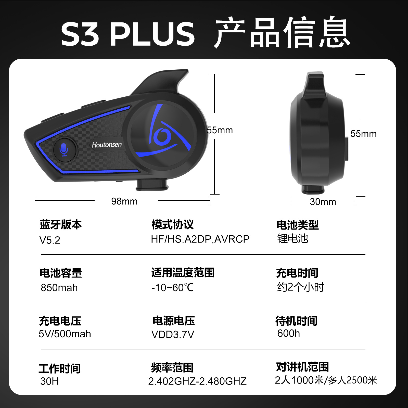產品:Houtonsen S3 Plus 摩托車頭盔耳機