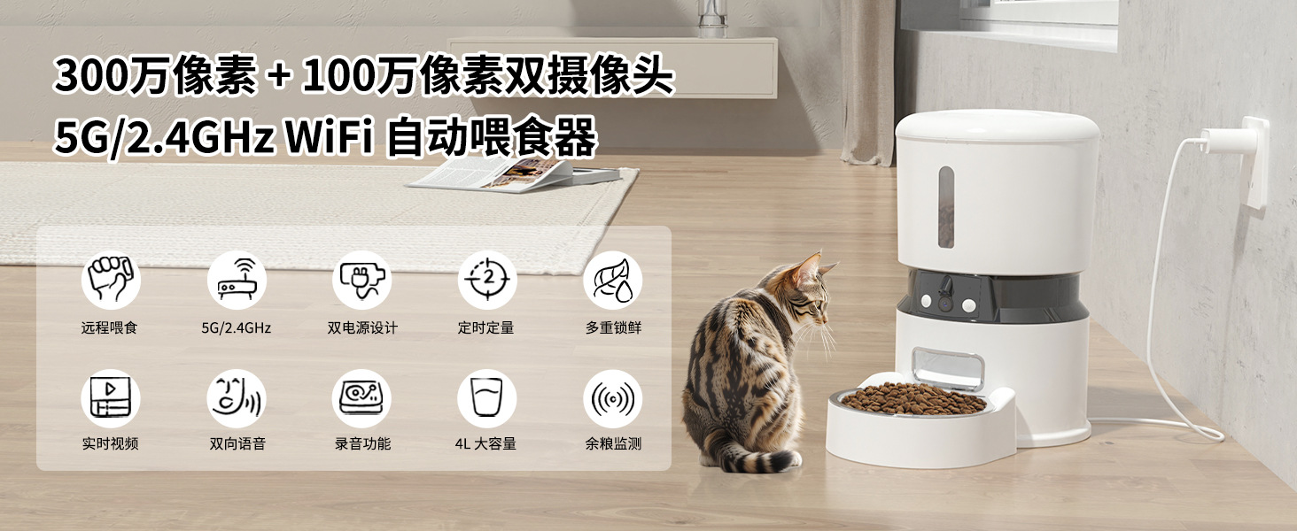 產品:雙攝像頭寵物智能餵食器