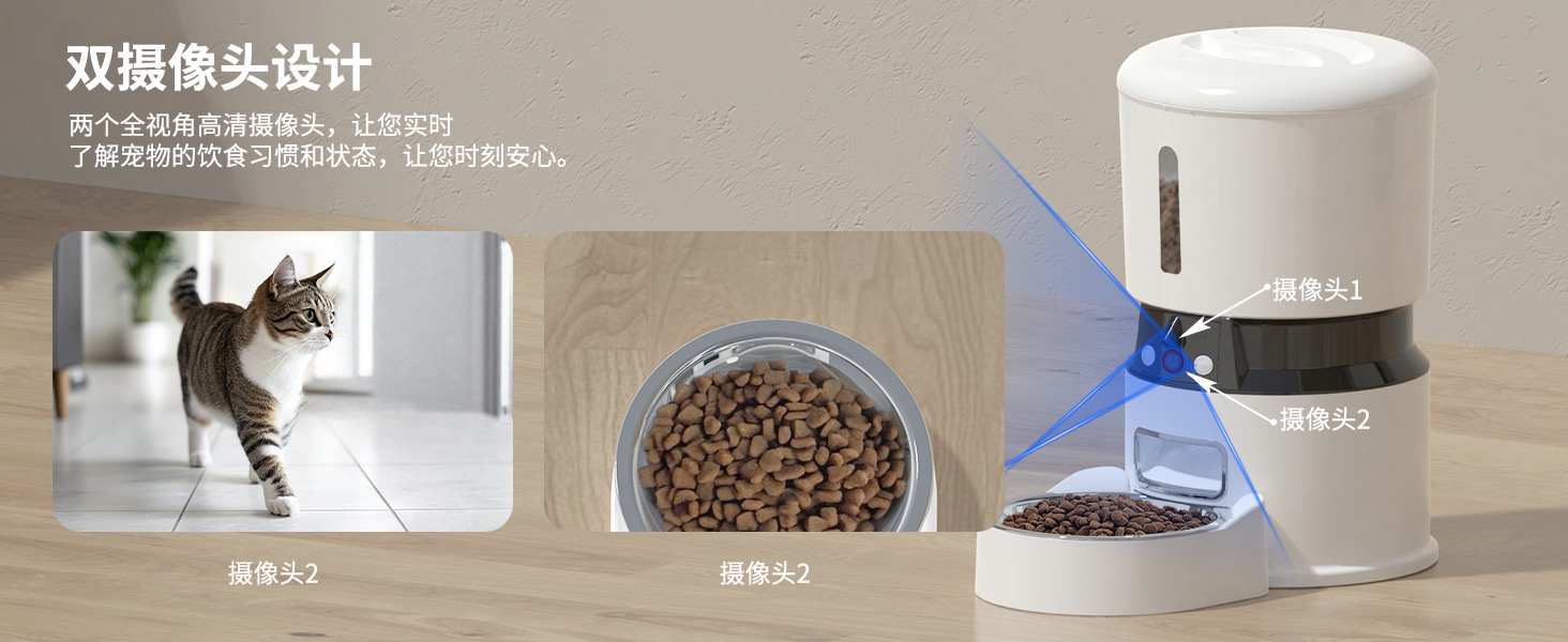 ▸雙鏡頭設計,全方位查看進食情況。