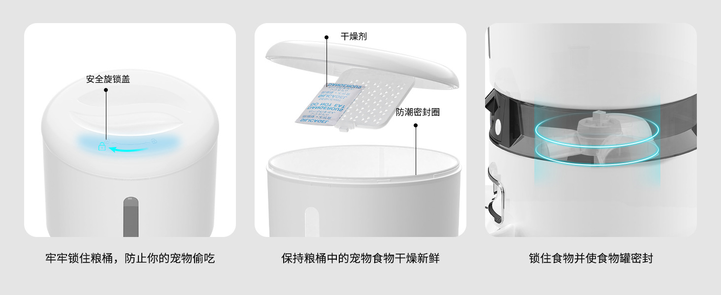 ▸三重保護,鎖鮮同時防止寵物偷吃。