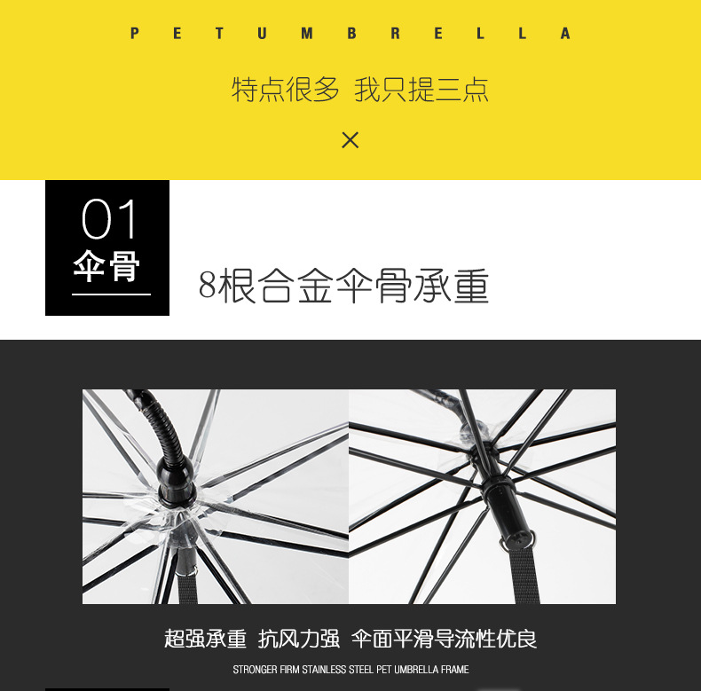 ▸透明傘面:讓愛寵保持在視線范圍內。