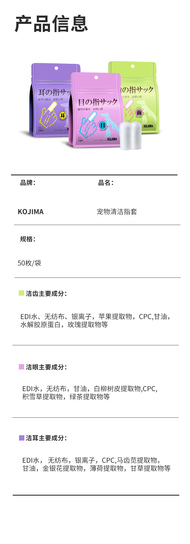 產品:Kojima咖家 潔眼/潔耳/潔齒指套濕巾