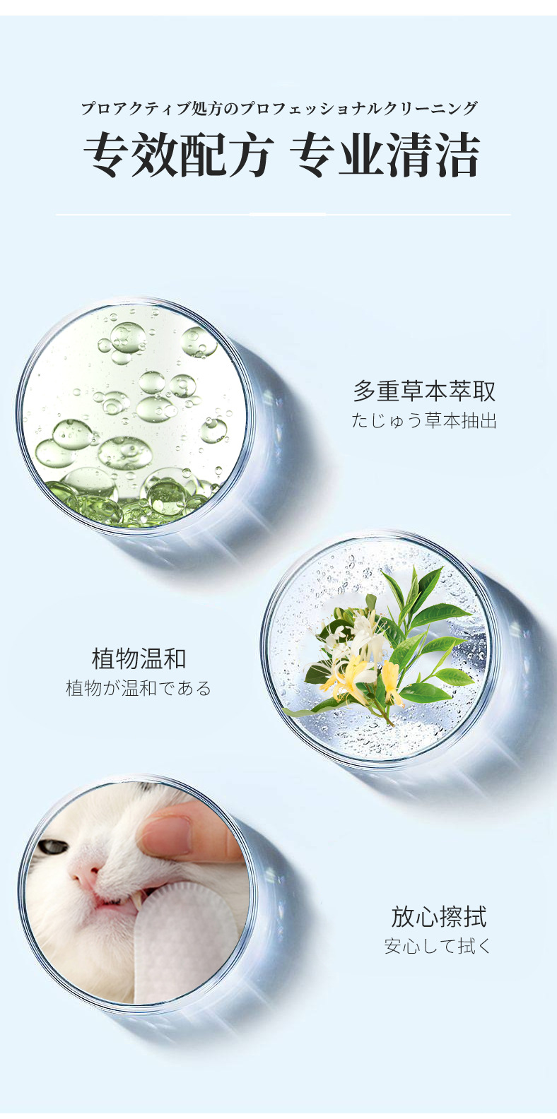 ● 多重草本萃取,溫和植物配方,放心擦拭。