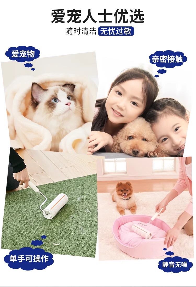 適用於寵物窩、沙發、床單、地毯等,輕鬆解決粘毛場景!不用電的吸塵器,沒有噪音,不會嚇到愛寵。