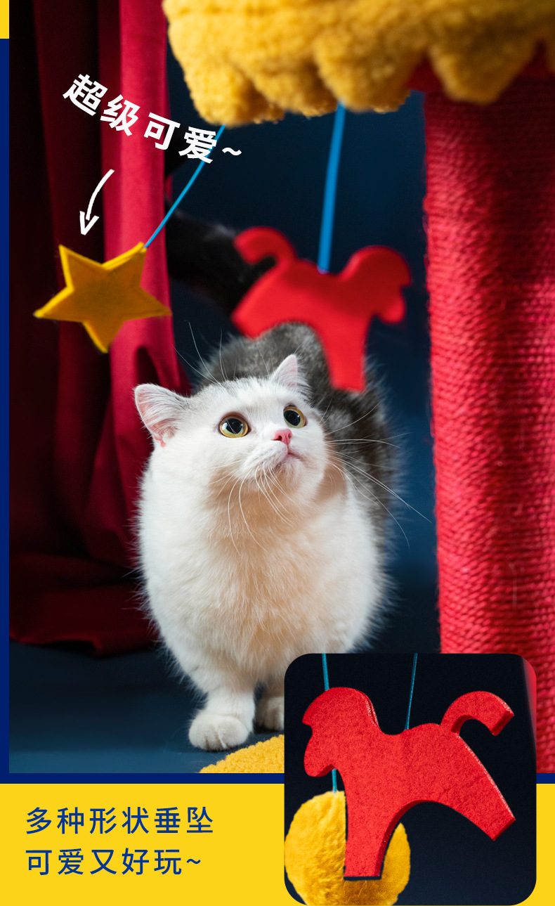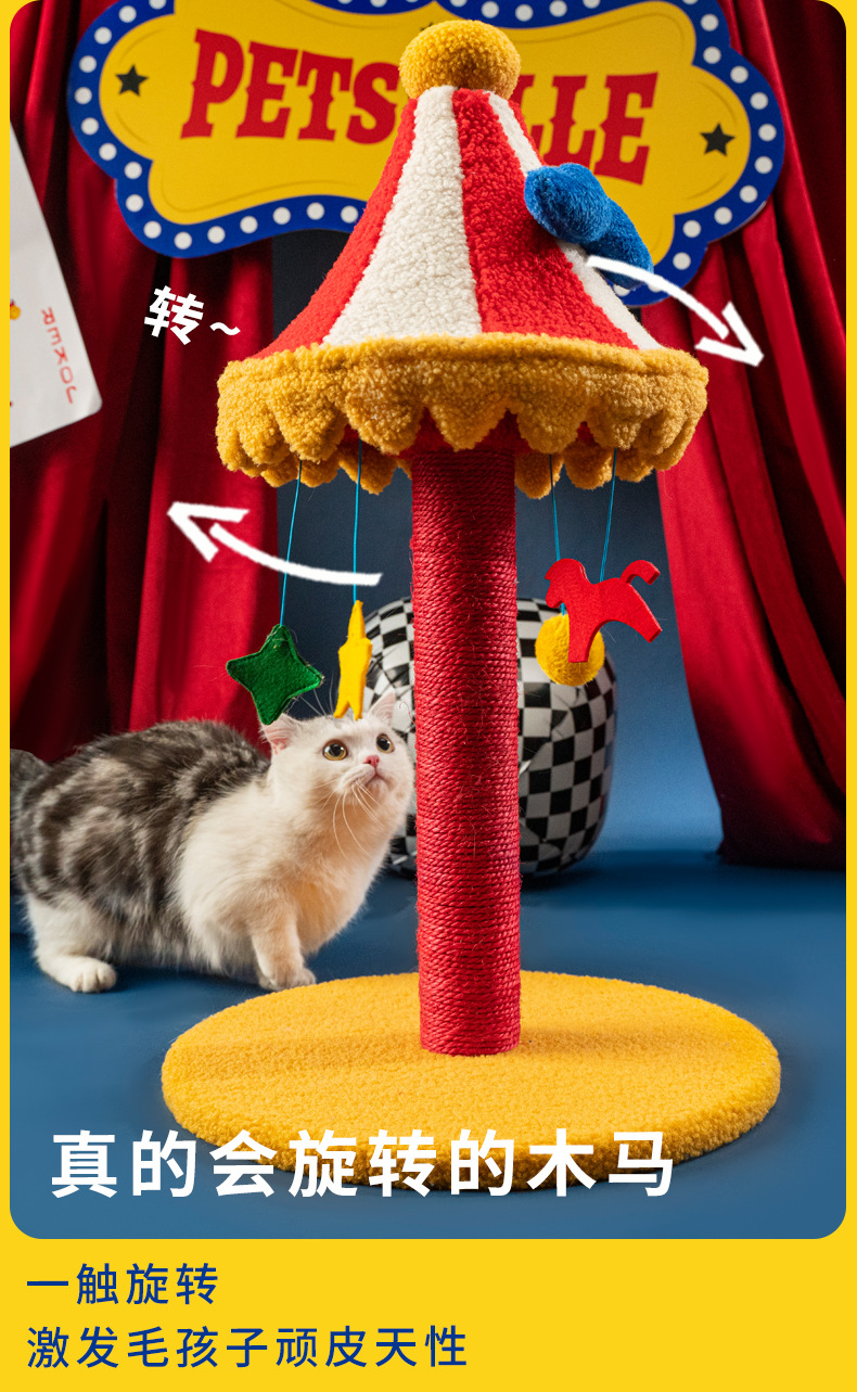 無論你的童年有沒有在旋轉木馬上過足癮,都不應該讓貓貓錯過這份驚喜大玩具。精巧鏈接製作工藝,真的會旋轉的木馬,激發毛孩子頑皮天性。垂墜掛飾部分不僅是滿滿童年回憶,還內含滿滿進口優質貓薄荷,多重感官享受讓貓貓欲罷不能!