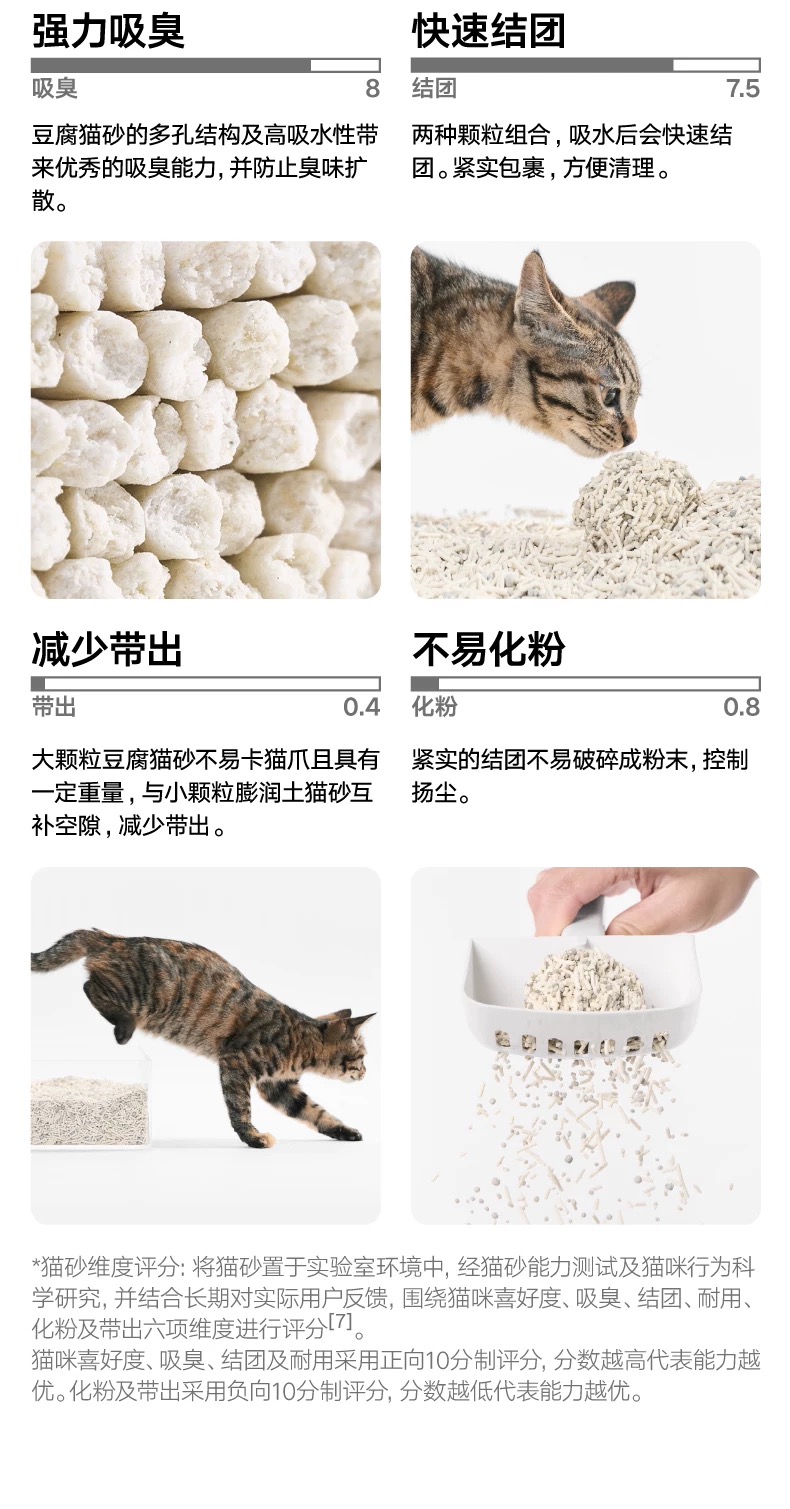 產品比例: 70%豆腐貓砂 + 30%膨潤土貓砂
