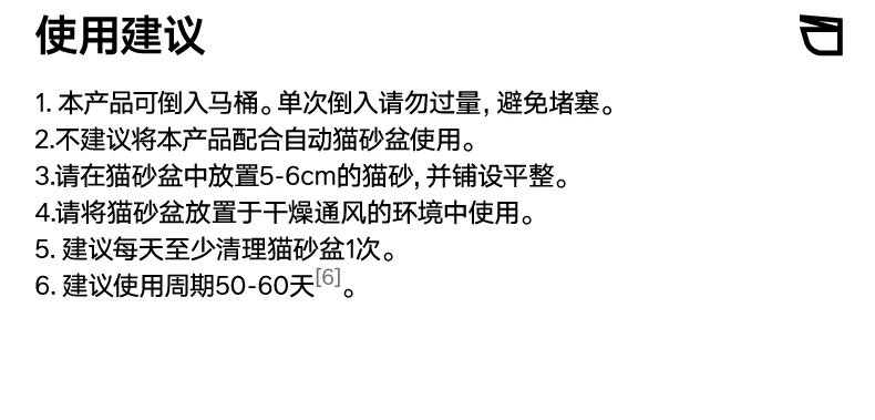 - 請在貓砂盆中放置5-6cm的貓砂 並鋪設平整
