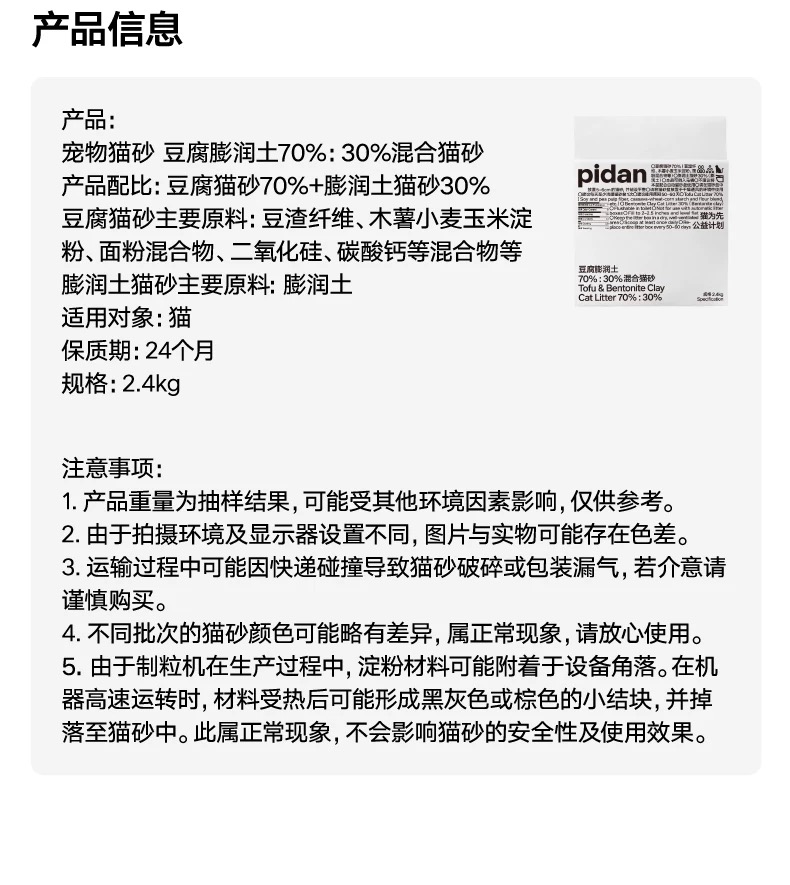 產品:pidan pidan 豆腐膨潤土70%:30%混合貓砂