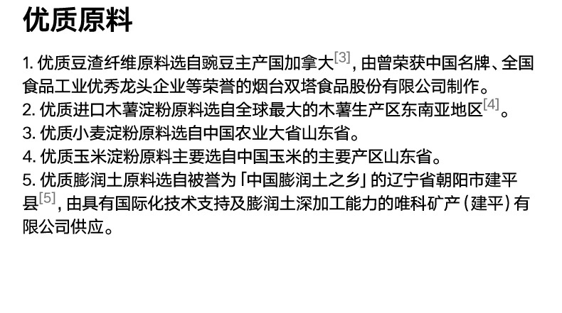 主要原料:加拿大豌豆豆渣纖維、澱粉、瓜爾豆膠、膨潤土