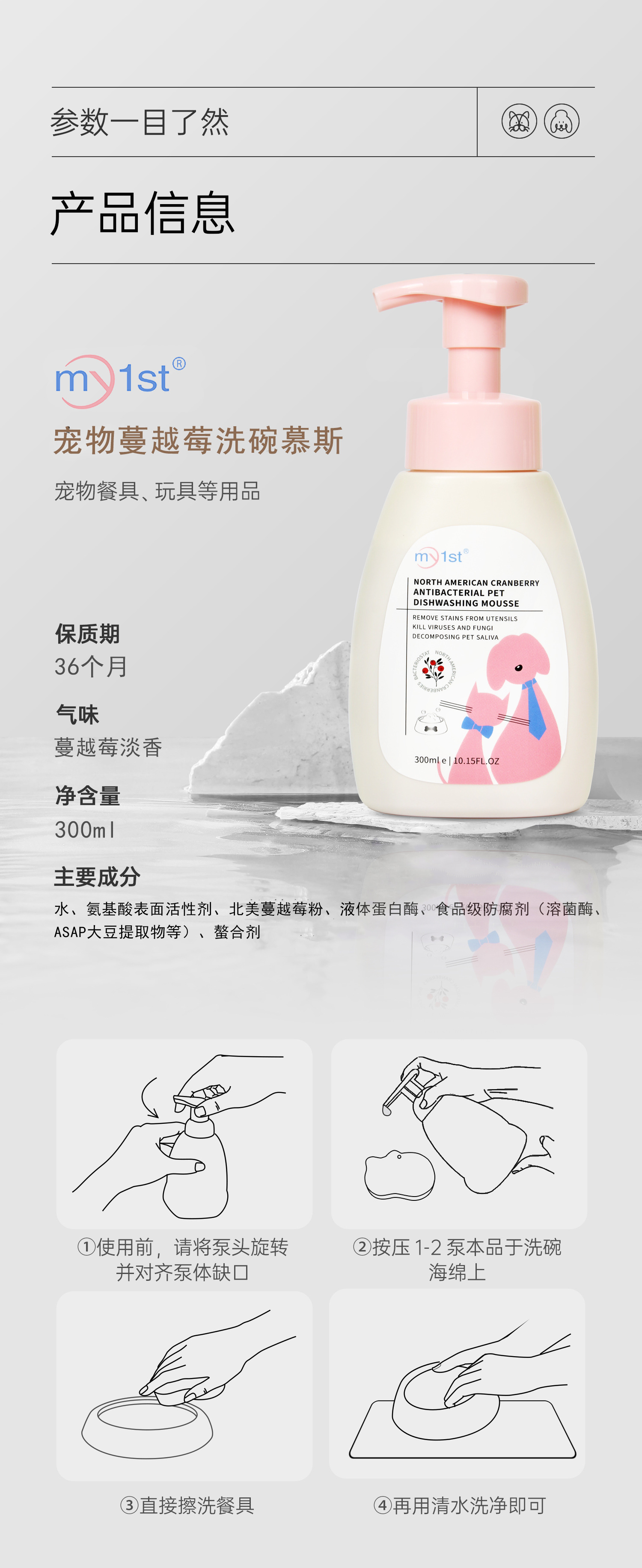 產品:my1st北美蔓越莓抑菌寵物洗碗慕斯
