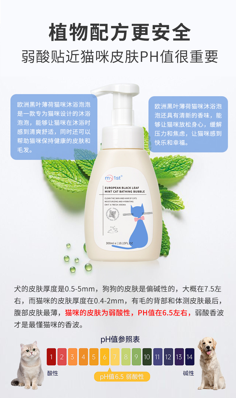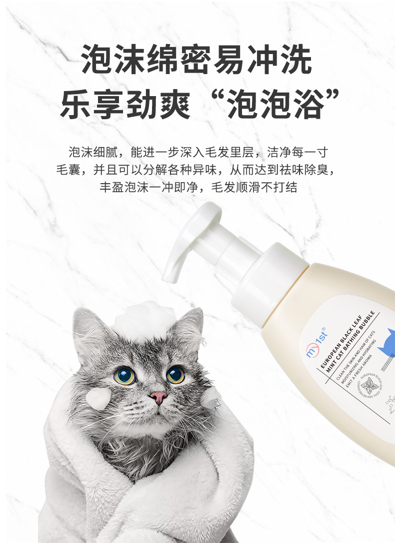 (3支起購)my1st歐洲黑葉薄荷貓咪沐浴泡泡300ml貓用精油護理留香沐浴露貓貓專用香波