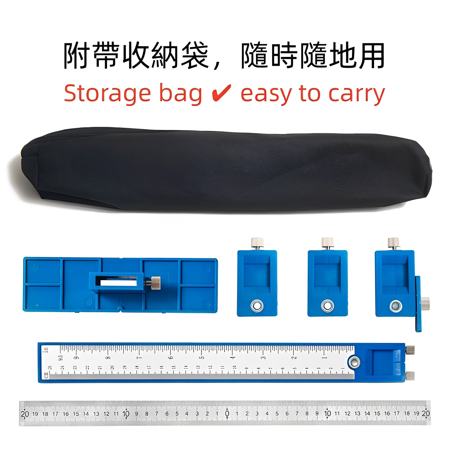 ✓雙高清刻度,定位方便✓多方位調節,打孔寬度、深度均可自由調整✓橫向不鏽鋼直尺,刻度清晰不易生鏽✓可拆卸並快速組裝,配搭收納袋隨時隨地可用✓背部交錯紋路,大大提高強度