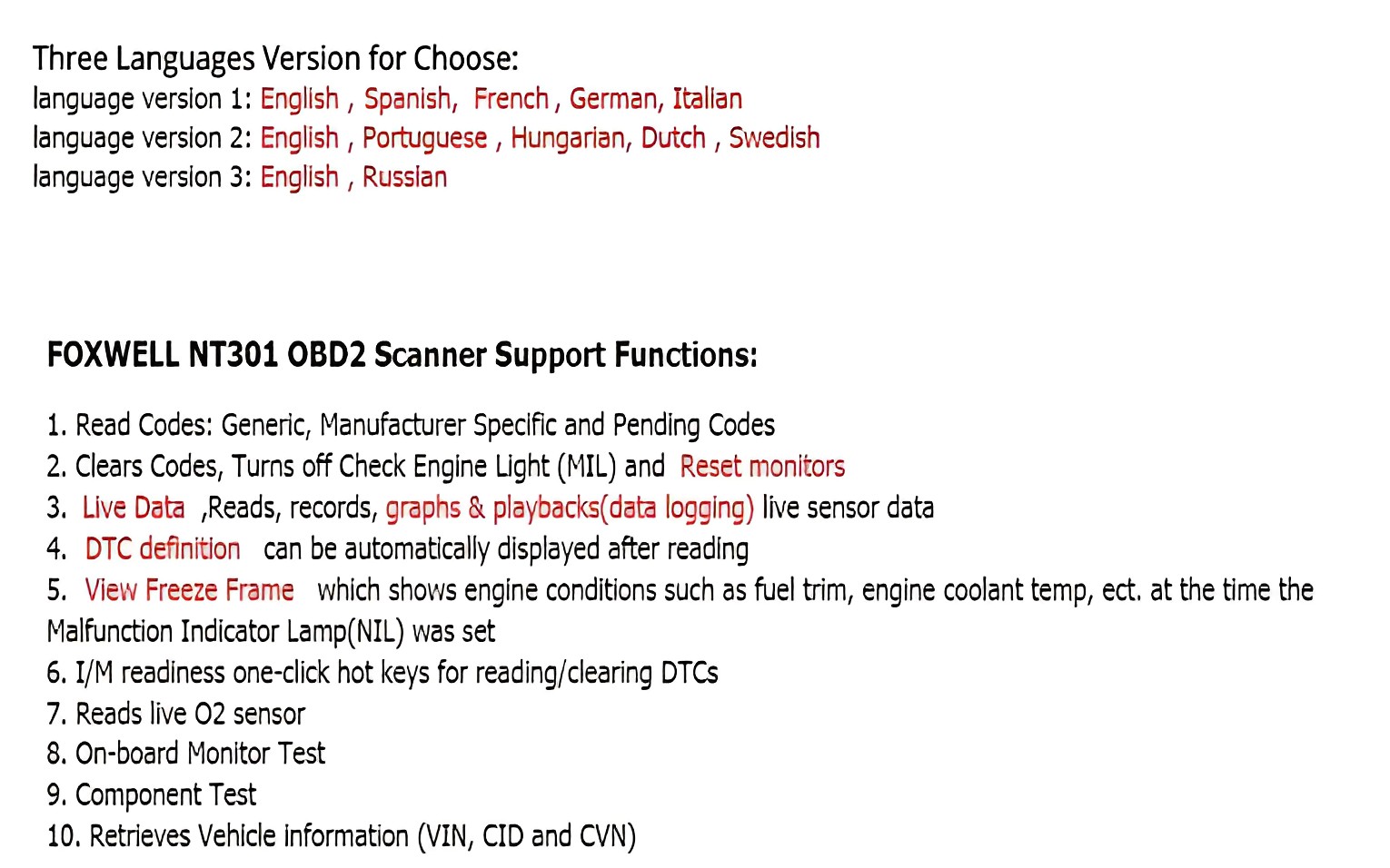 產品:(海外版)Foxwell NT301汽車故障檢測