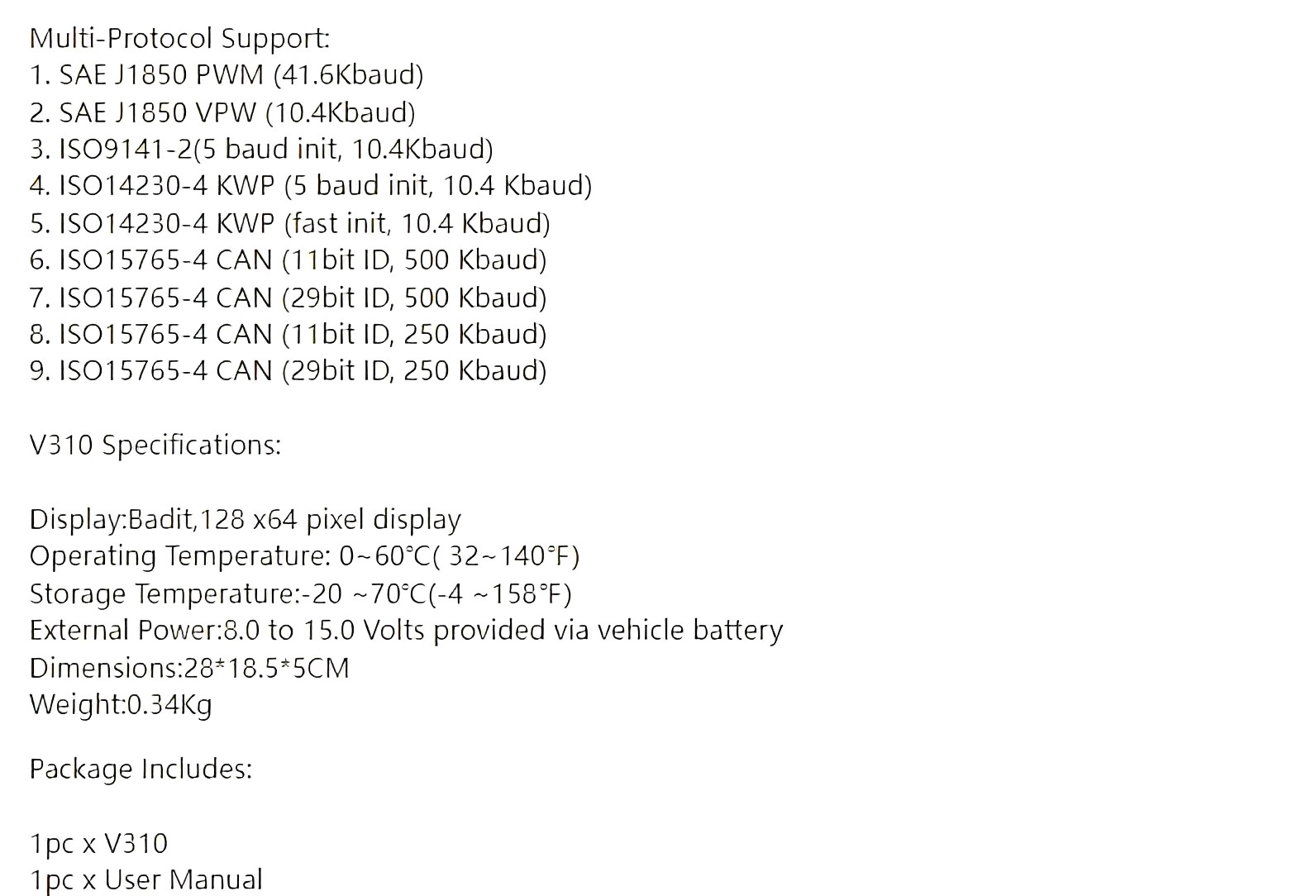 產品:(海外版)V310汽車故障檢測儀