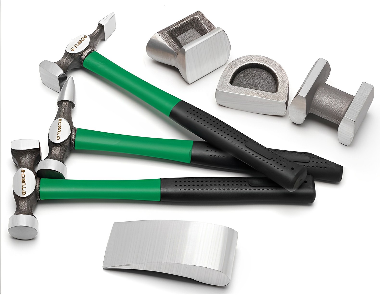 配置:輕式縮減鈑金錘、鶴嘴精整鈑金錘、直面精整鈑金錘、彎形鈑金襯鐵、扁形鈑金襯鐵、墩形鈑金襯鐵、鏟形鈑金襯鐵