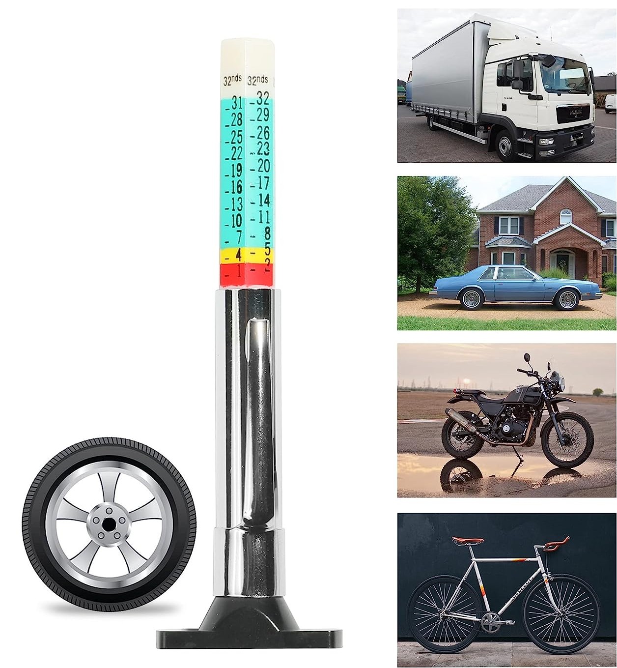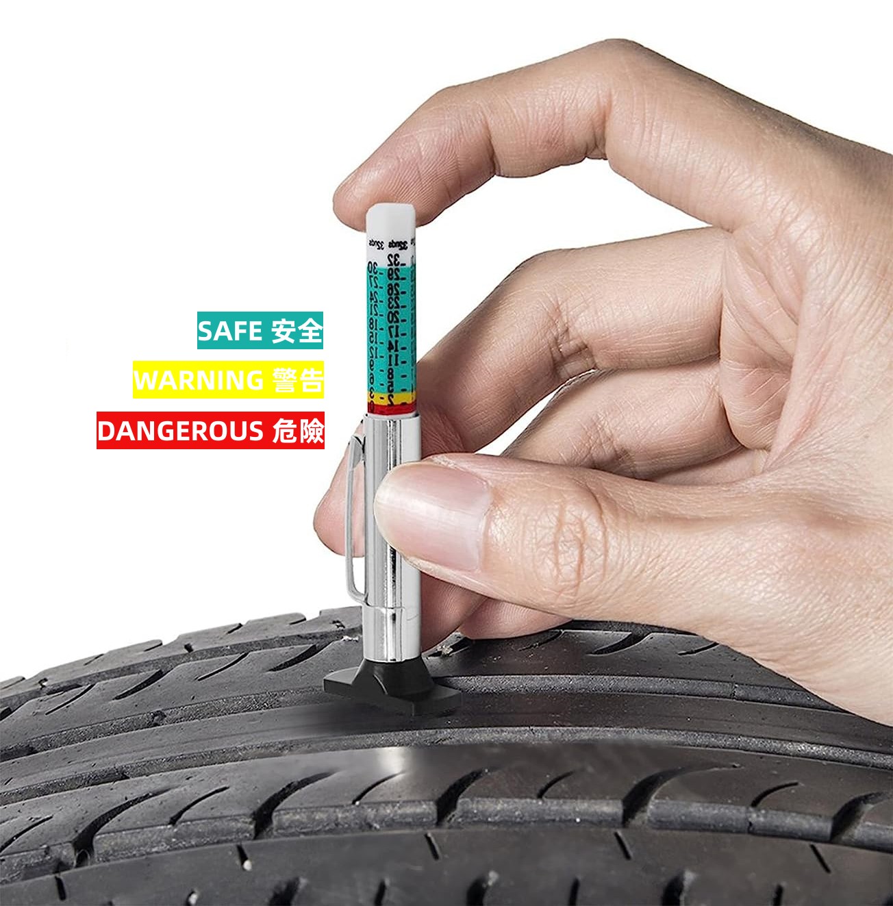 ✓適用於卡車、摩托車、單車和任何乘用車✓讀數與警戒值清晰,呵護您的安全✓推桿設計,推動省力,操作方便✓外形小巧,可隨身攜帶,隨時隨地測量✓測針直徑2mm,狹窄間隙也可使用