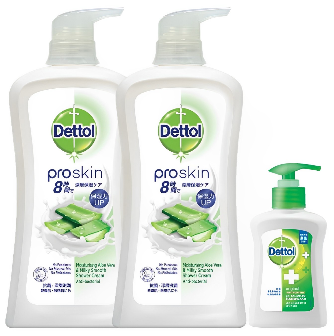 【澳門發貨】Dettol滴露Proskin深層滋潤親膚沐浴乳霜滋潤蘆薈及牛奶醇香950g*2+Dettol滴露松木潔手液150g
