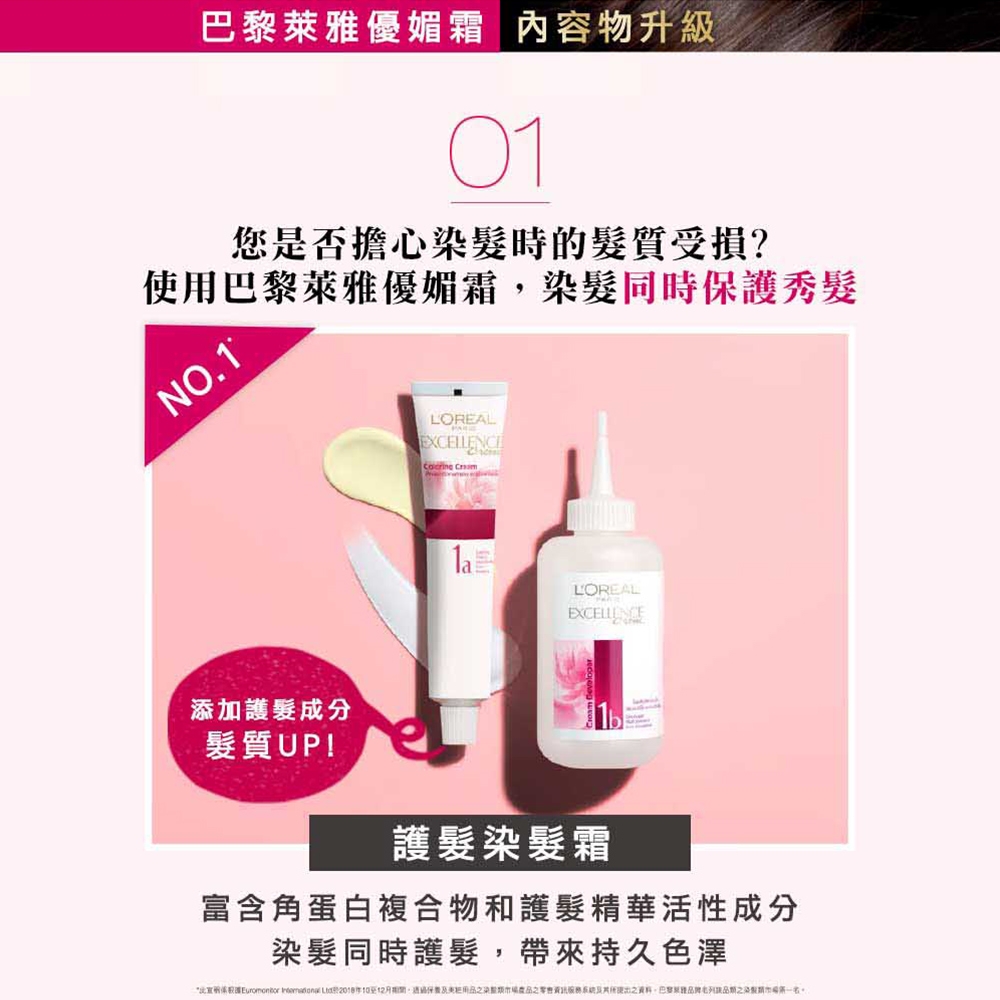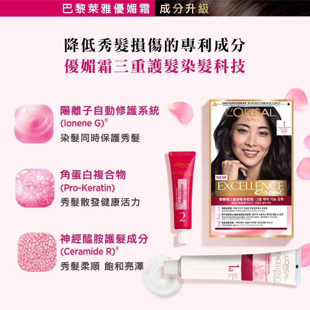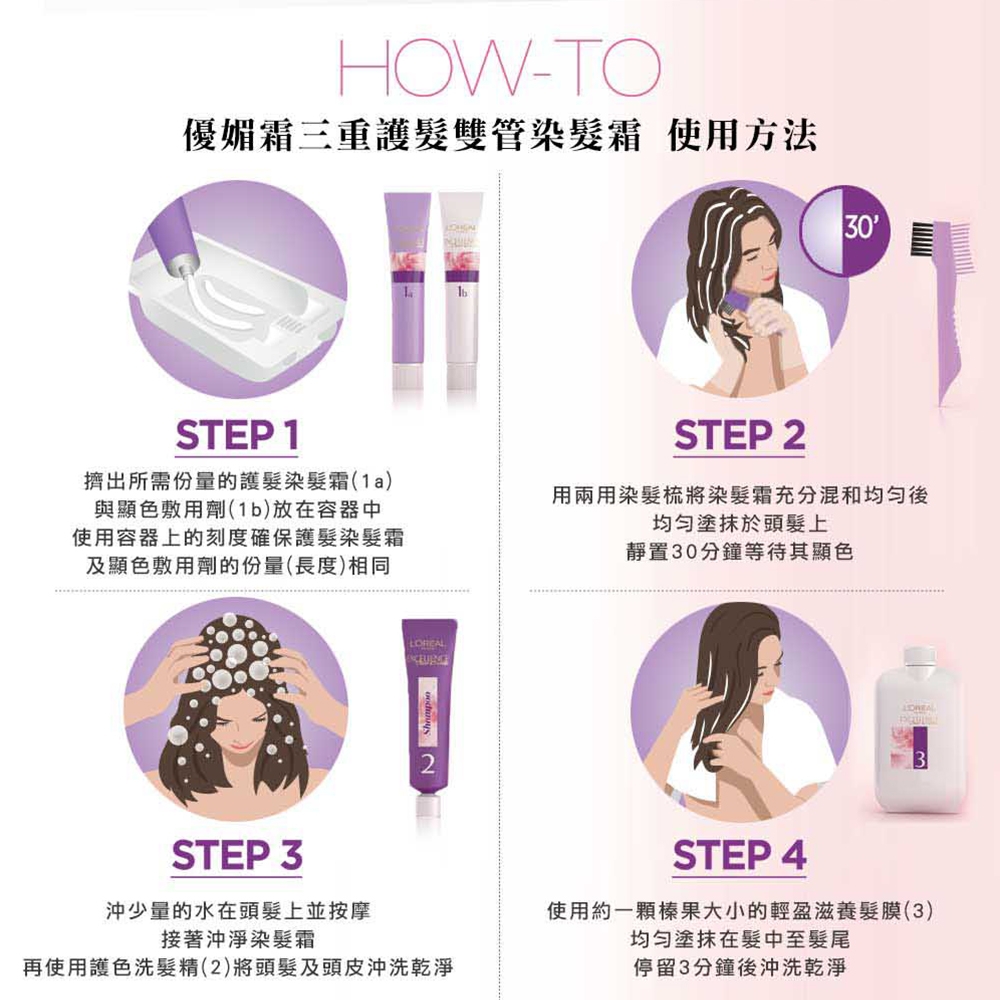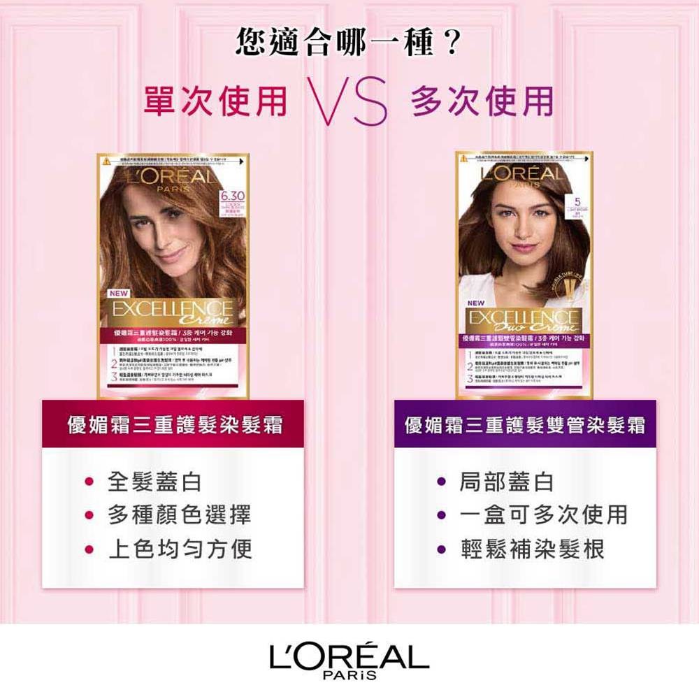 產品:L'Oréal Paris 巴黎萊雅優媚霜三重護髮雙管染髮霜