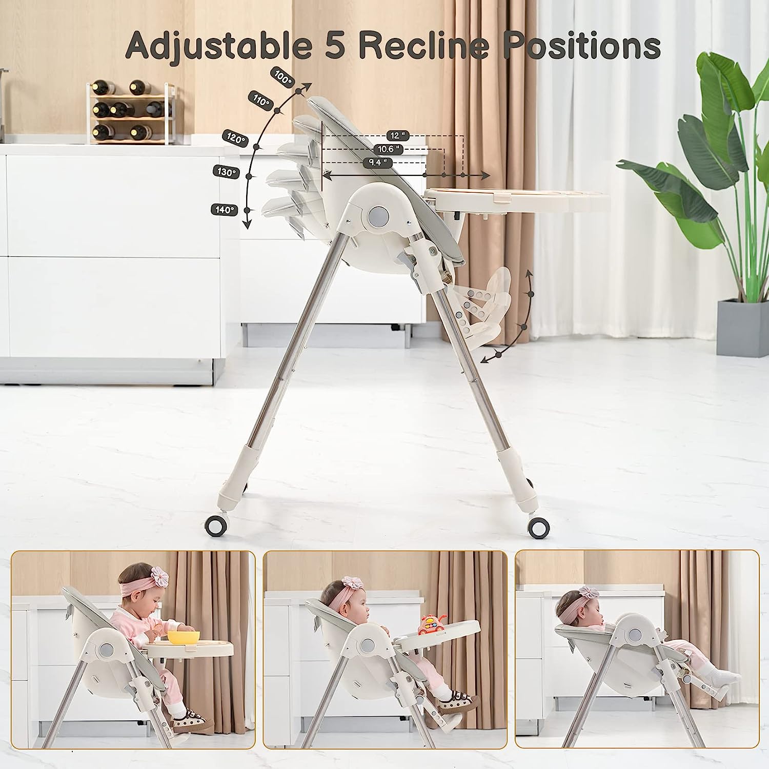 【多功能高腳椅】這款高腳椅有5 個座椅高度、5 個可調節靠背位置、3 個腳踏板和托盤位置,非常適合餵養、玩耍、進餐、放鬆和小睡。